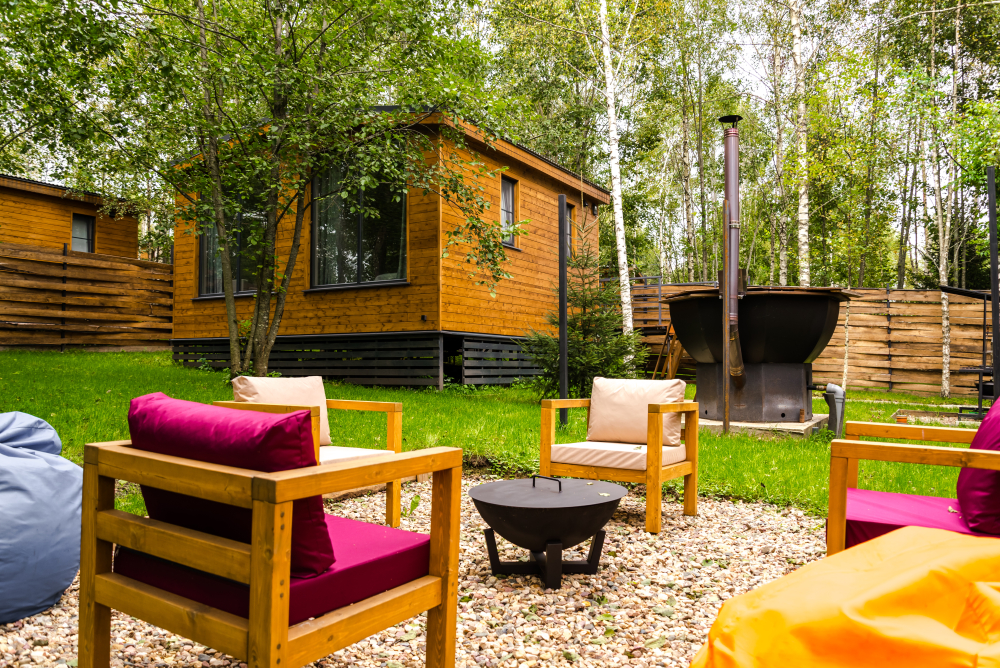 Костровая зона есть около домиков БарнХаус Бохо, Дом-Баня с чаном , БарнХаус Лофт, БарнХаус Бохо 2, БарнХаус Эклектика 2.