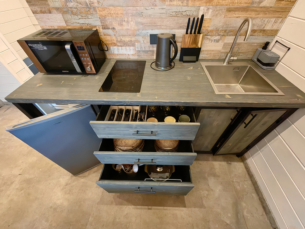 В каждом домике своя специально оборудованная мангальная зона. Уголь/розжиг не предоставляются! Шампура, решетки, казан предоставляются