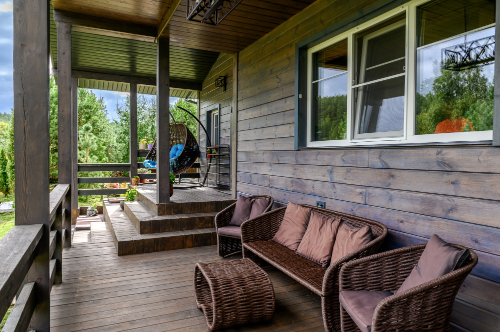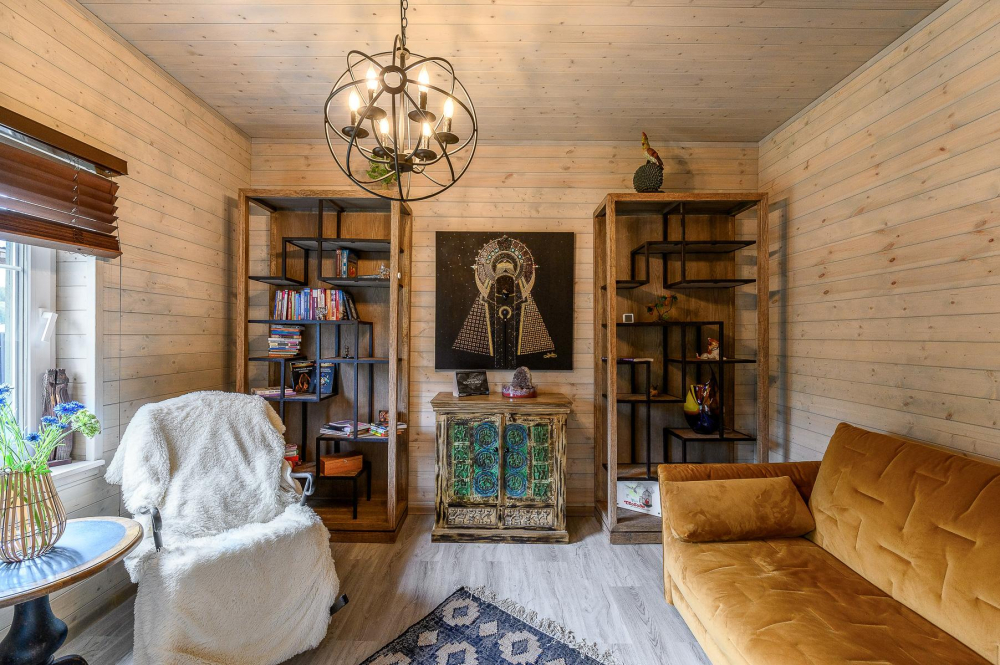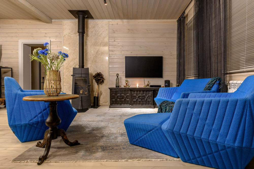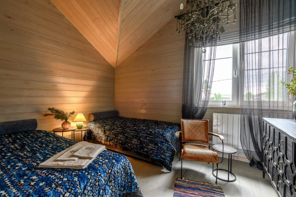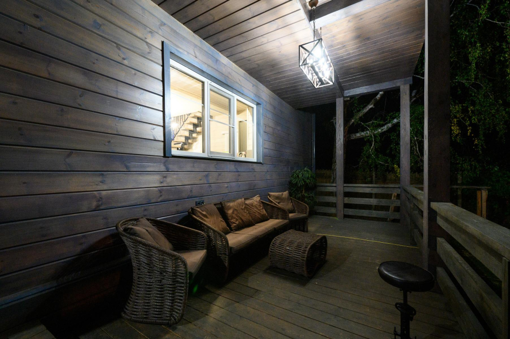 Есть баня с каменной печью из змеевика и зона для барбекю. Из уютных комнат открывается вид на реку, лес и горы, что создаёт атмосферу тишины и умиротворения.