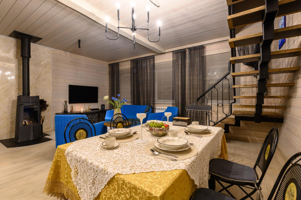 - Вас ждут библиотека, каминный зал, кухня и столовая.