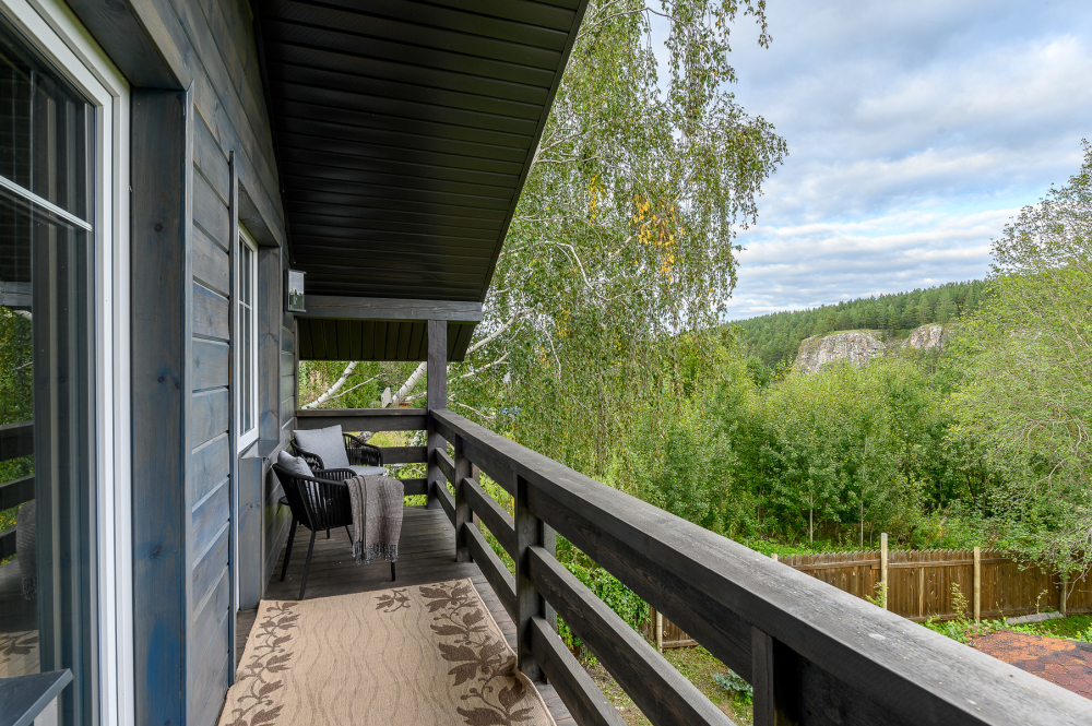 - Просторная терраса и широкий балкон открывают великолепный вид на реку и величественные скалы.