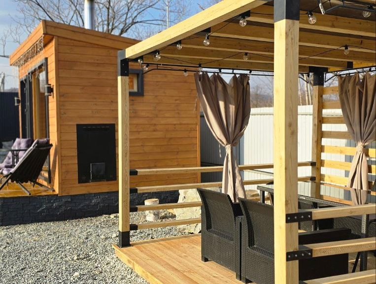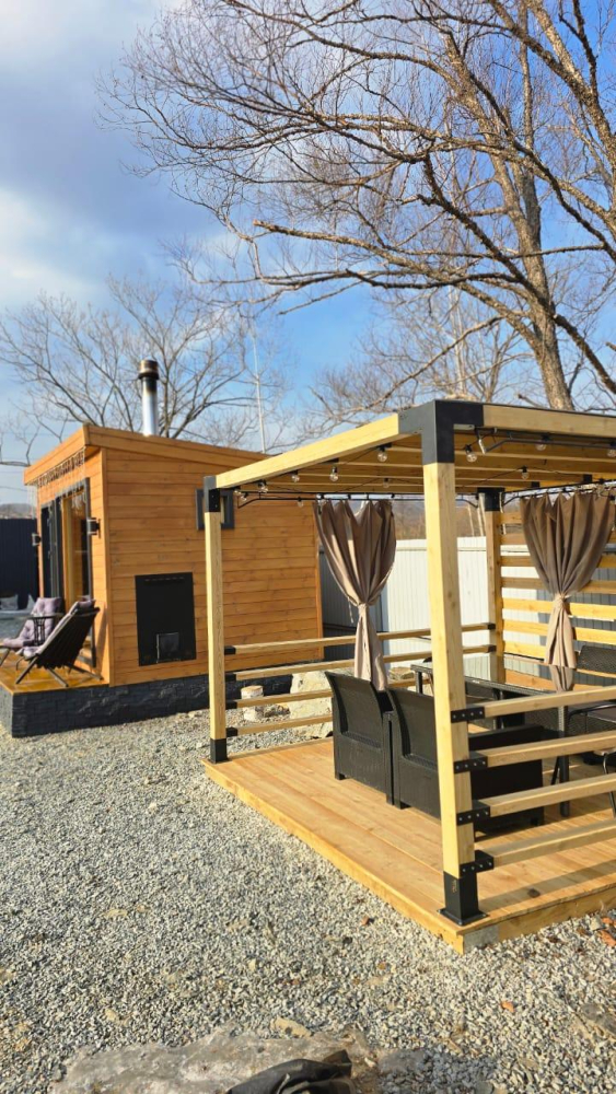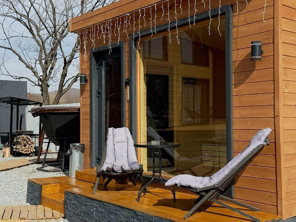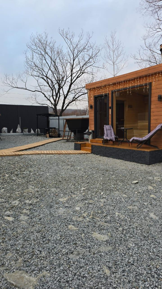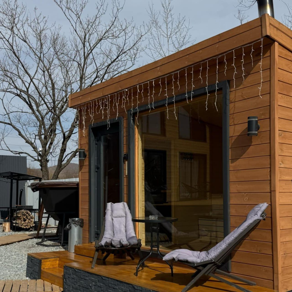 - Дом с террасой, чаном и баней