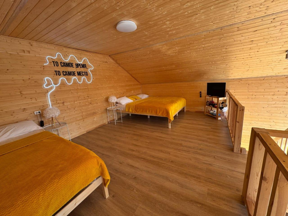 РАЗМЕЩЕНИЕ: Для комфортного проживания предлагается двухэтажный дом вместимостью 6 человек. Отдельная комфортная спальня на первом этаже с евро кроватью и две евро кровати на втором этаже, все спальные места укомплектованы постельным бельем.