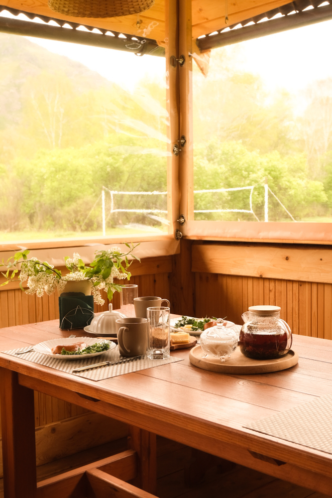 Свежие, вкусные блюда и ароматный кофе станут идеальным началом дня среди алтайской природы.