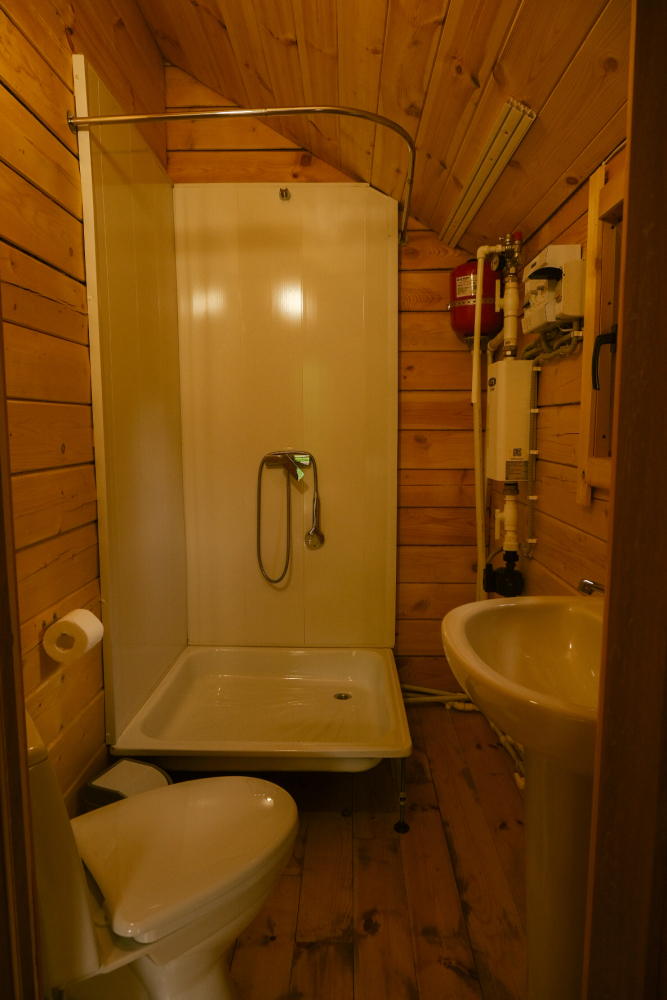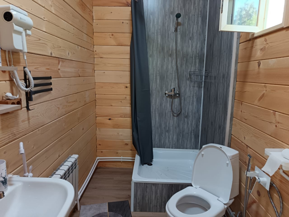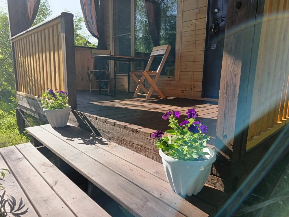 Горячий чан есть около домиков Дом на берегу, Дом с панорамным окном.