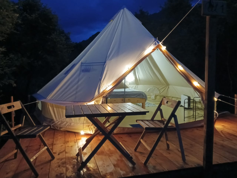 Глэмпинг на берегу реки в Горном Алтае