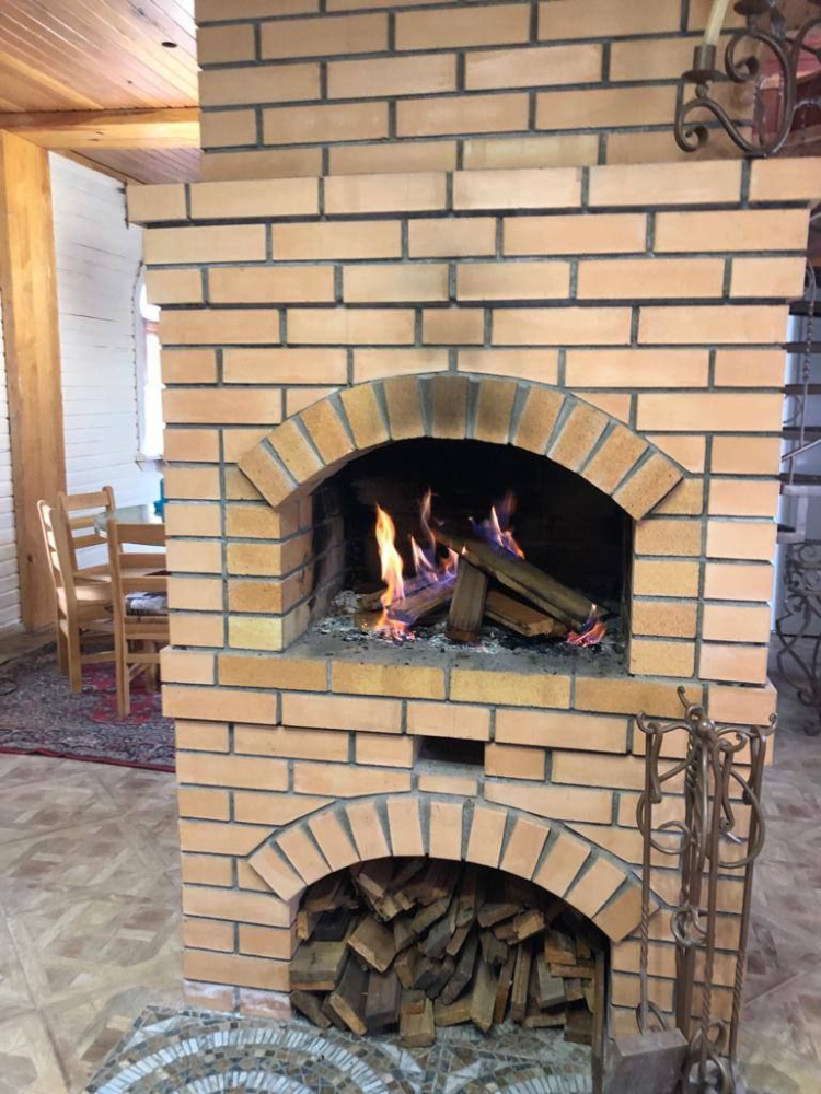 Есть зона для приготовления блюд на открытом огне.также в наличии решетки и шампуры.