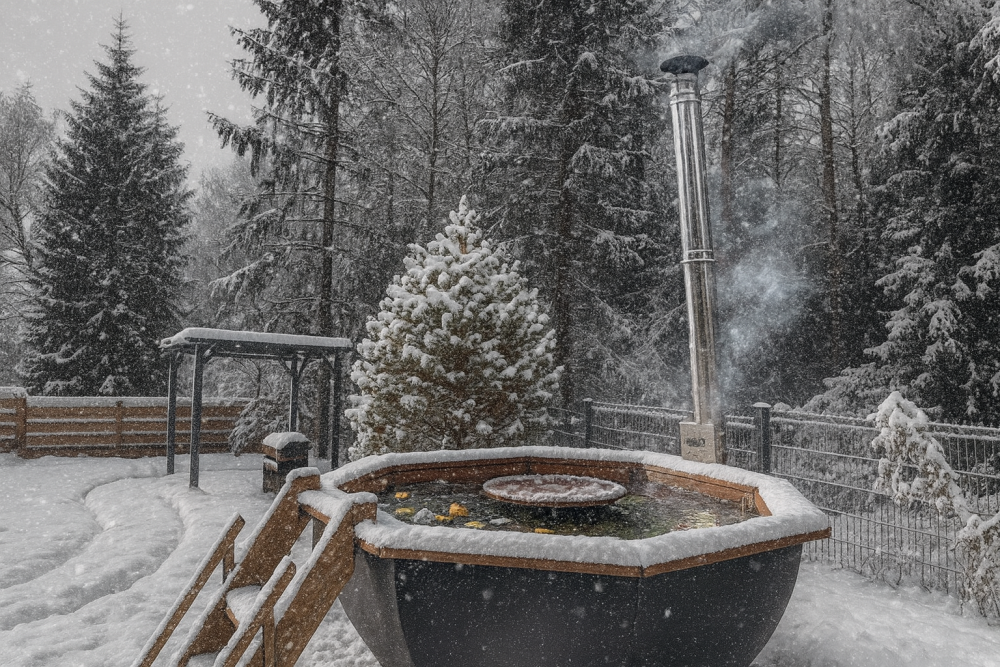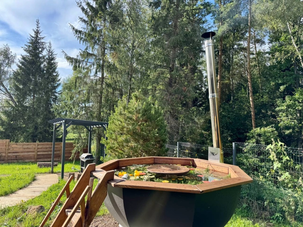 Сибирский банный чан находится у дома, время парения до 6 часов. Пользоваться можно круглый год.
