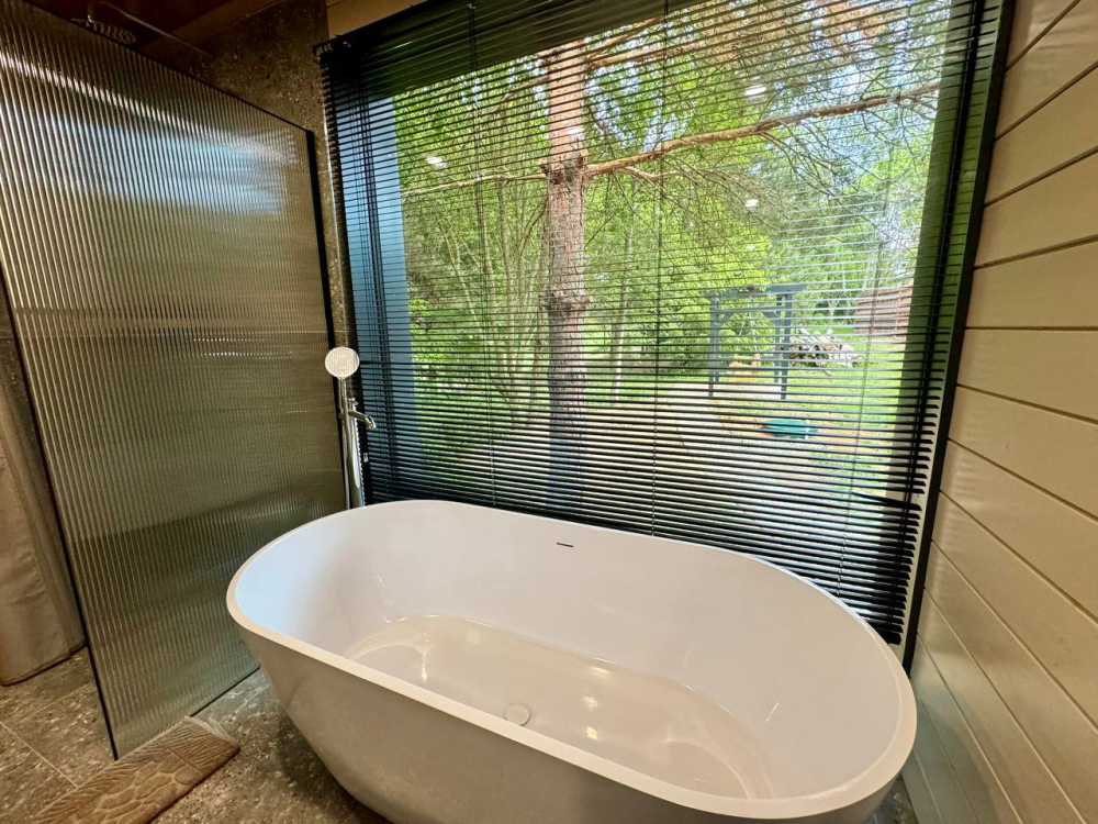 - Ванна у окна с видом на ели