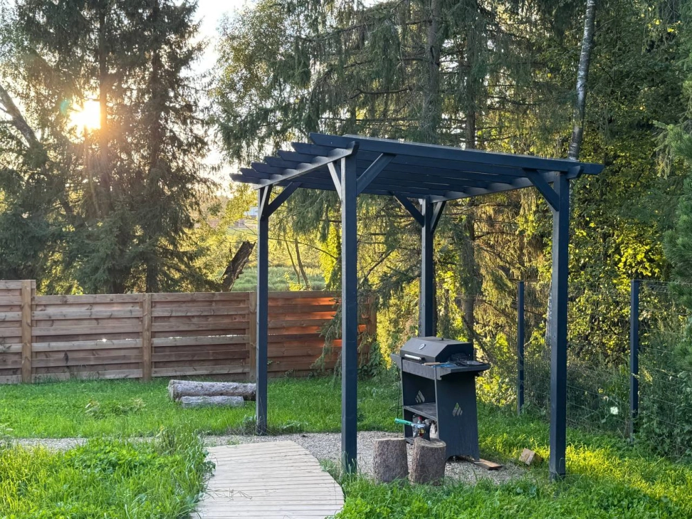 Wi-Fi, кофемашина, Smart-TV с «Алисой», колонка, стильная посуда, постельное бельё и полотенца, мыльные принадлежности, посудомойка, мангальная зона.