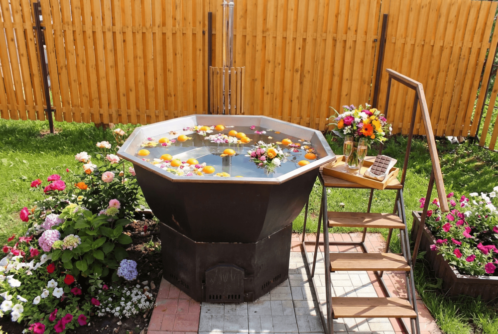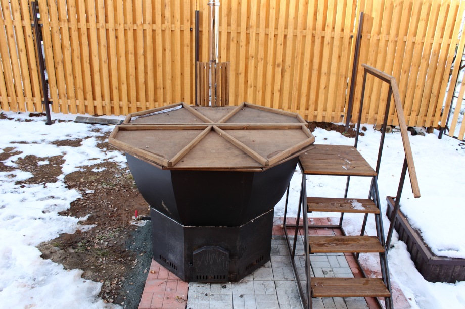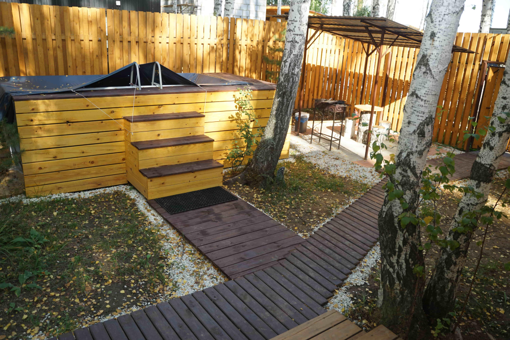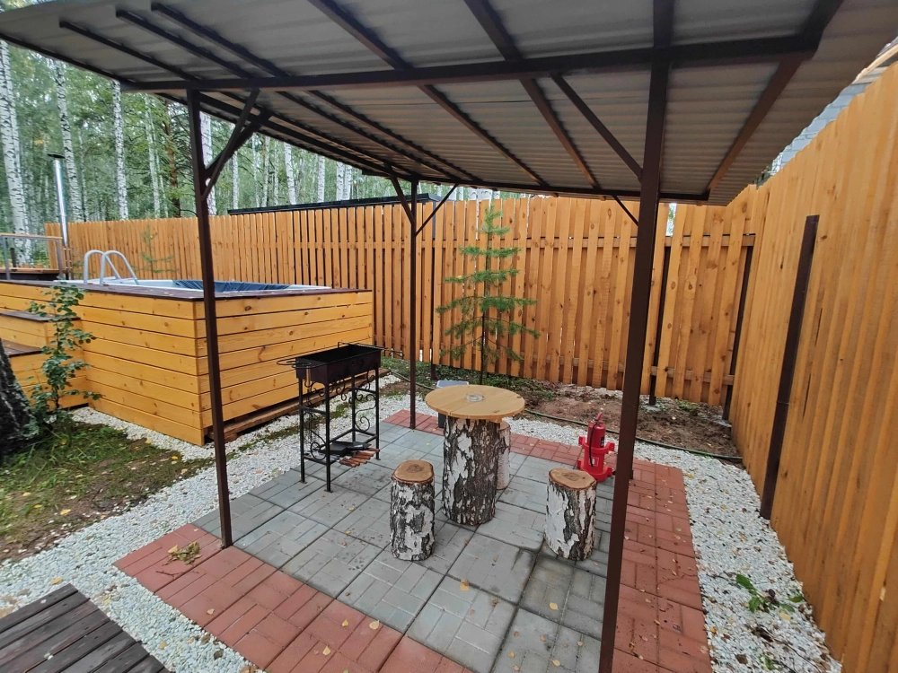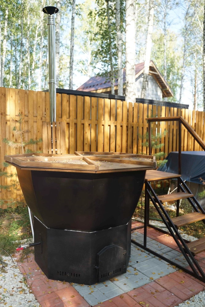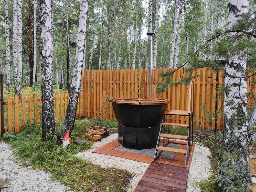 Горячий чан есть около домиков Дом , Дом , Дом + баня .