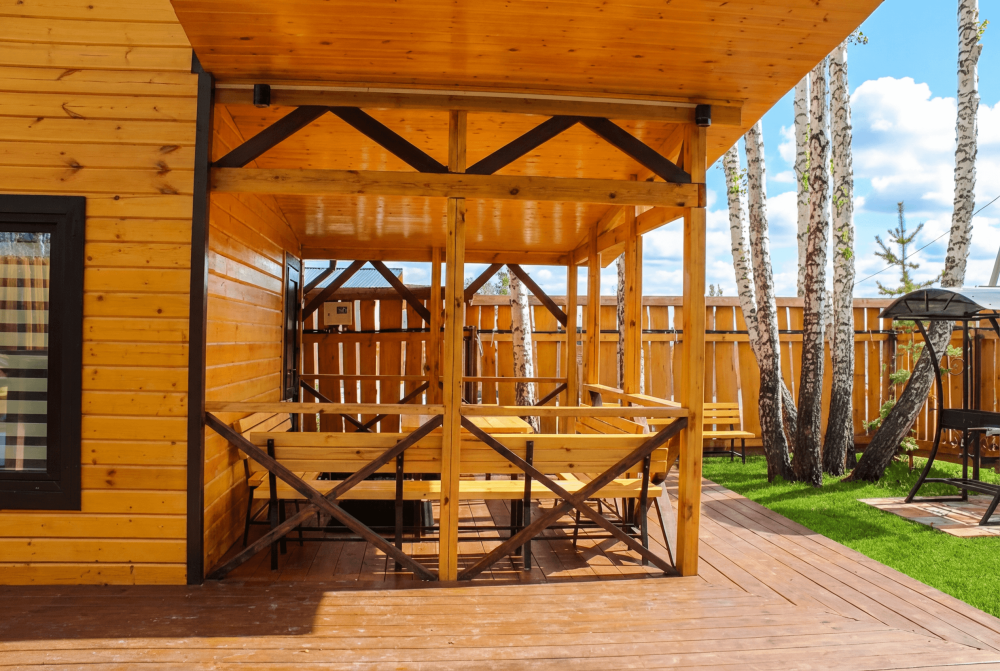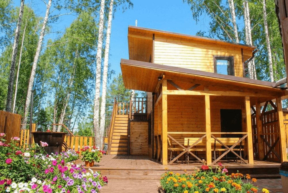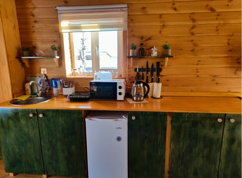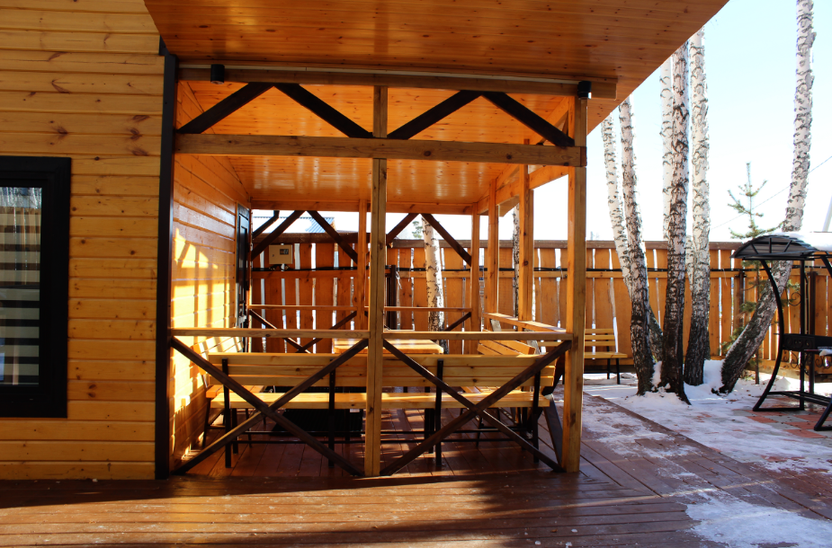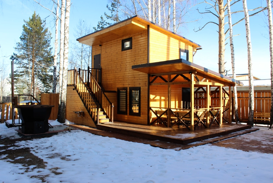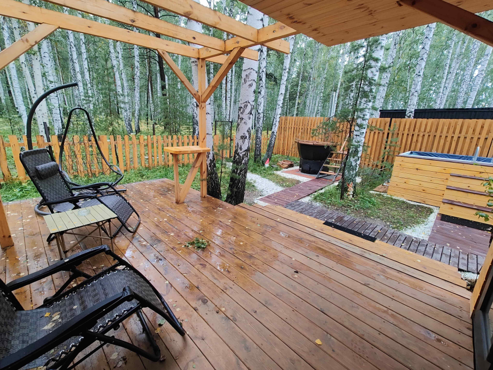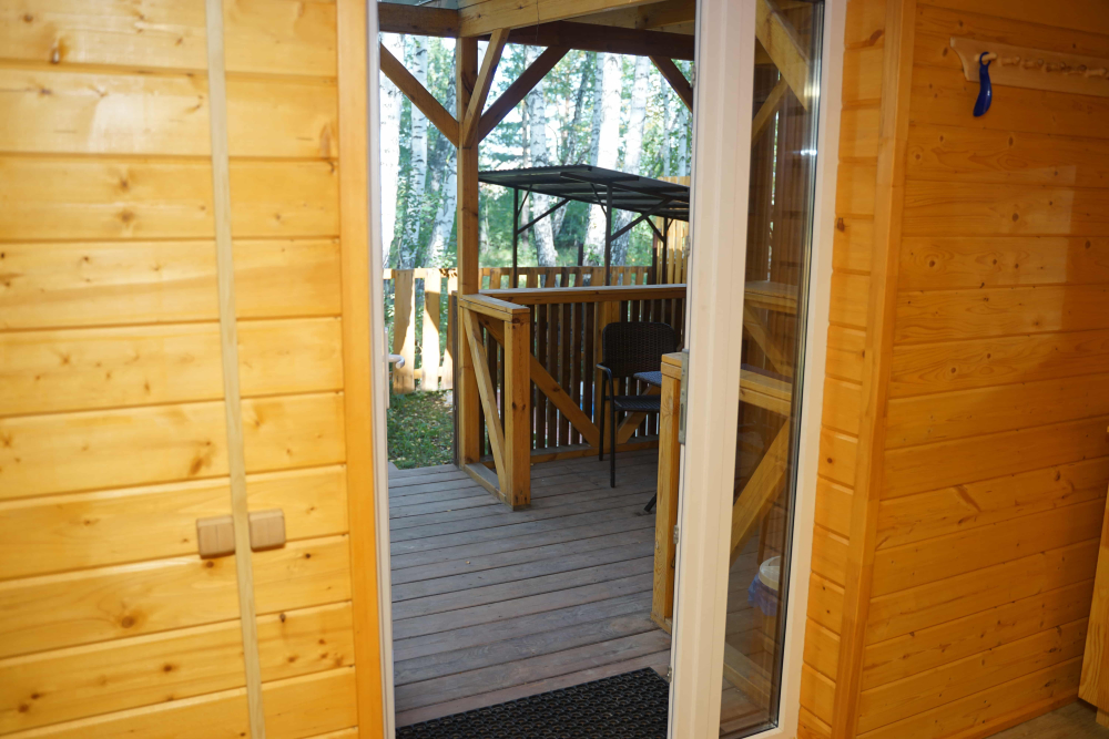 Также на территории есть общие горячий чан. Для домиков Дом "Тихий Бор" услуга недоступна.