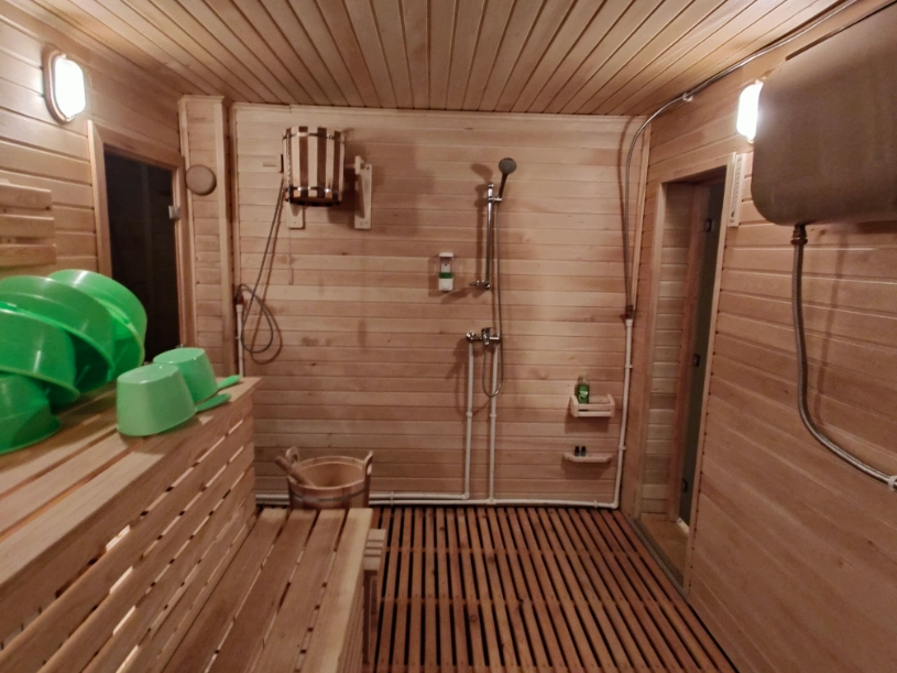 Также на территории есть общие баня. Для домиков Дом "Тихий Бор" услуга недоступна.