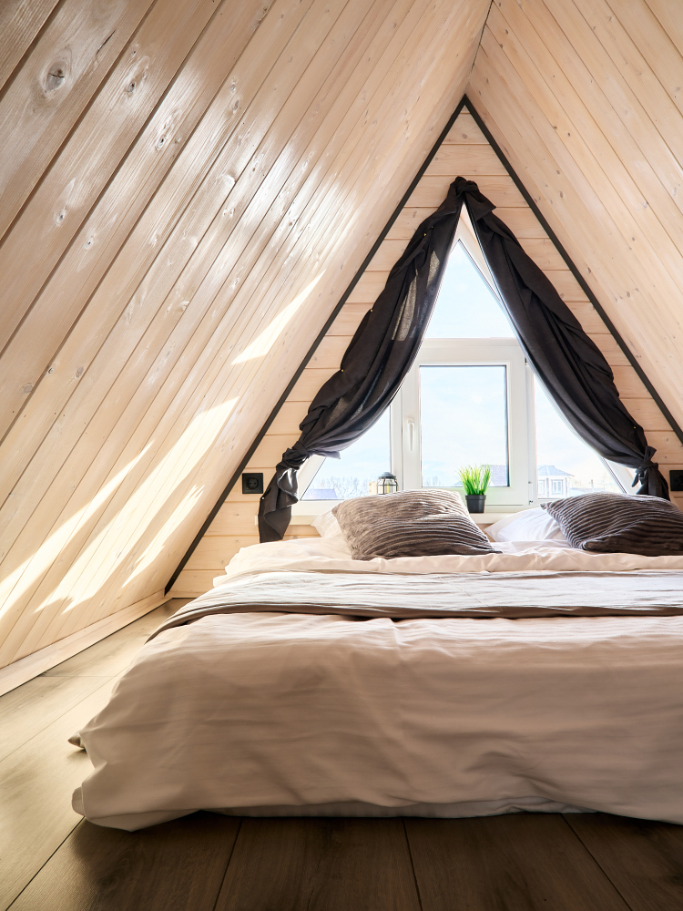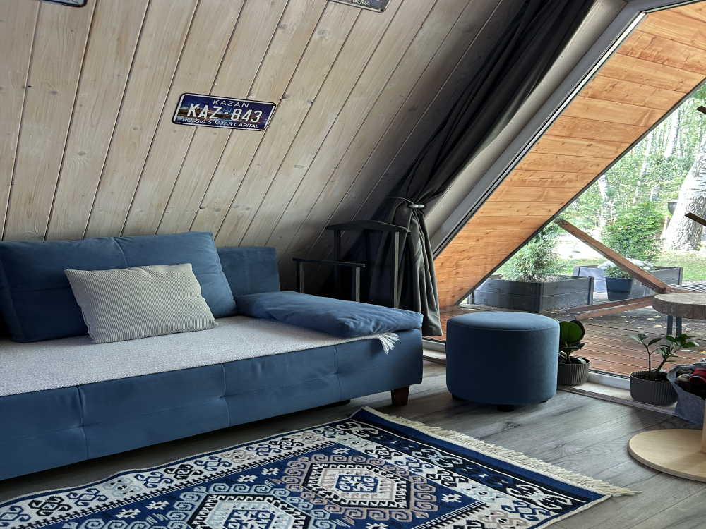 2+2 спальных места: двуспальный матрас на лофте и раскладной диван на первом этаже