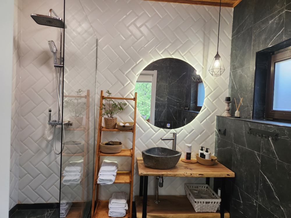 Горячий чан есть около домиков Бохо, Шале.