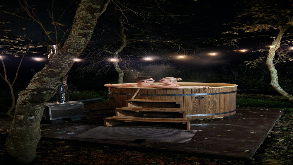 - Горячая купель под открытым небом позволяет насладиться теплом воды среди природы.