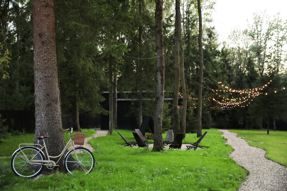 Всего в 50 км от МКАД, по Дмитровскому шоссе, среди леса расположилось наше камерное пространство для отдыха — уединённое, атмосферное, семейное.