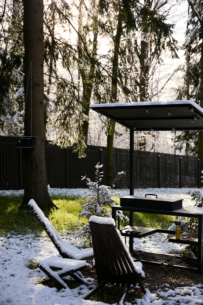 Каждый домик оборудован своей мангальной зоной + необходимыми девайсами- шампура и решетки.