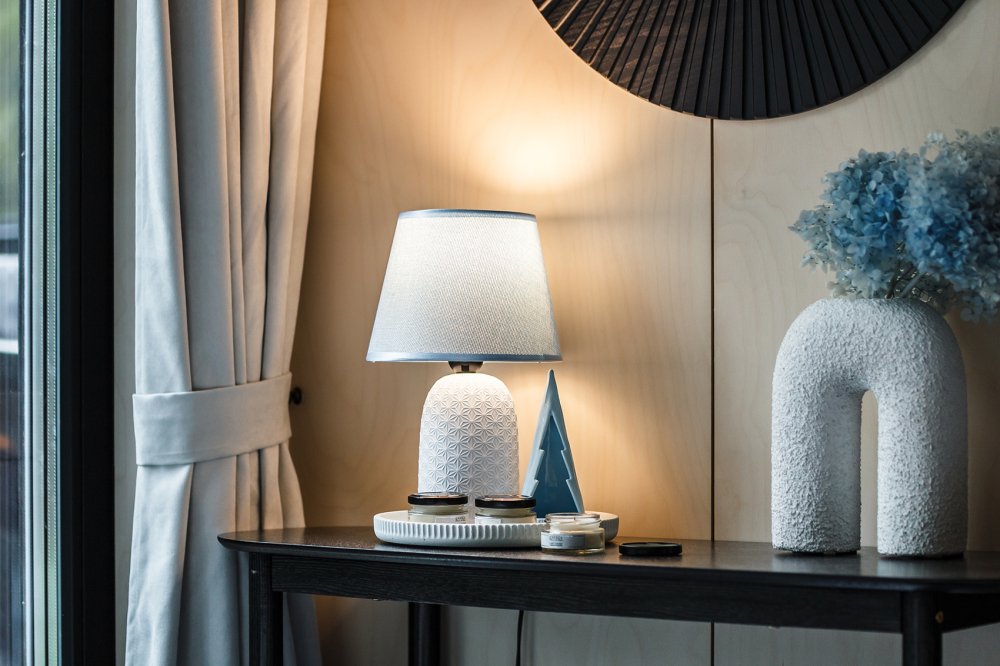 Просторная гостиная с камином и мягким светом