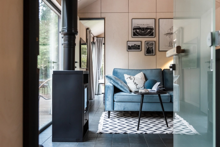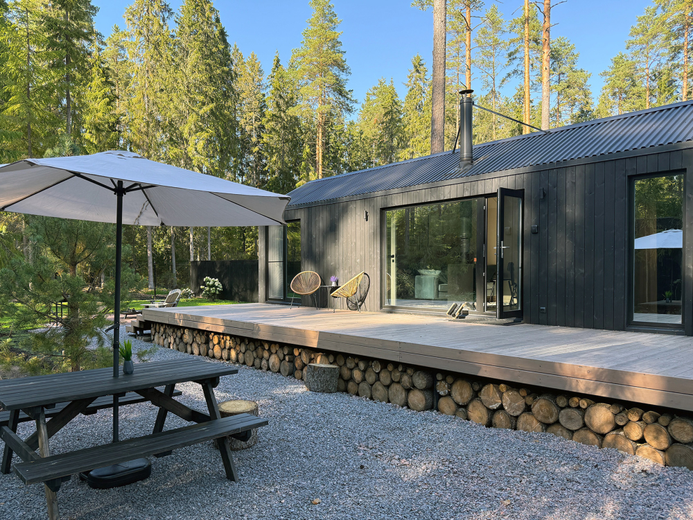 Уютный дом для отдыха в тишине и уединении. Приватная территория в лесу, панорамные окна, камин и сауна с видом на природу.