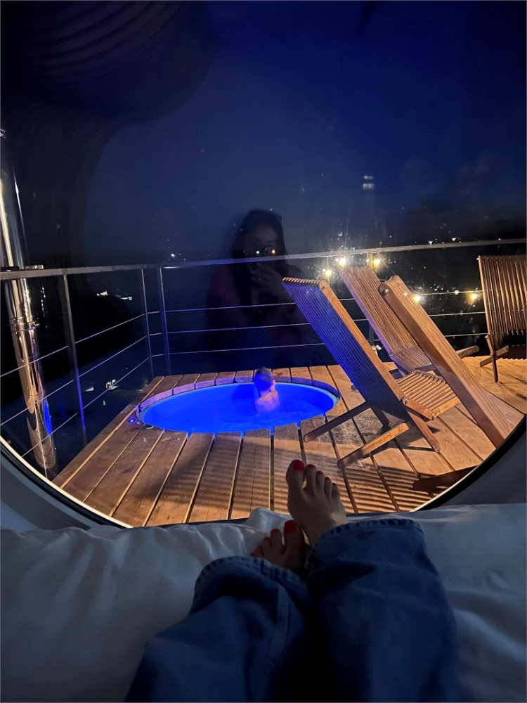 Горячий чан с джакузи под открытым небом с видом на Кудыкину гору. Стоимость 4000р/растопка