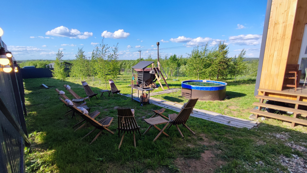 Уютный дом с горячим чаном недалеко от водоема.