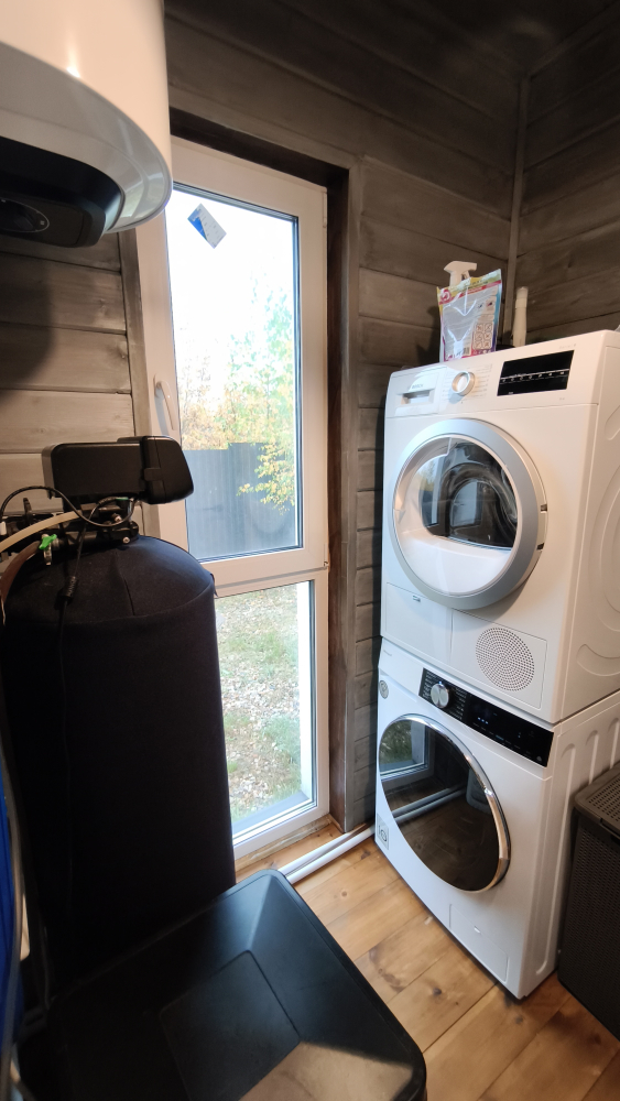 - Стиральная и сушильная машины, фен, утюг — все необходимые бытовые приборы для длительного отдыха.