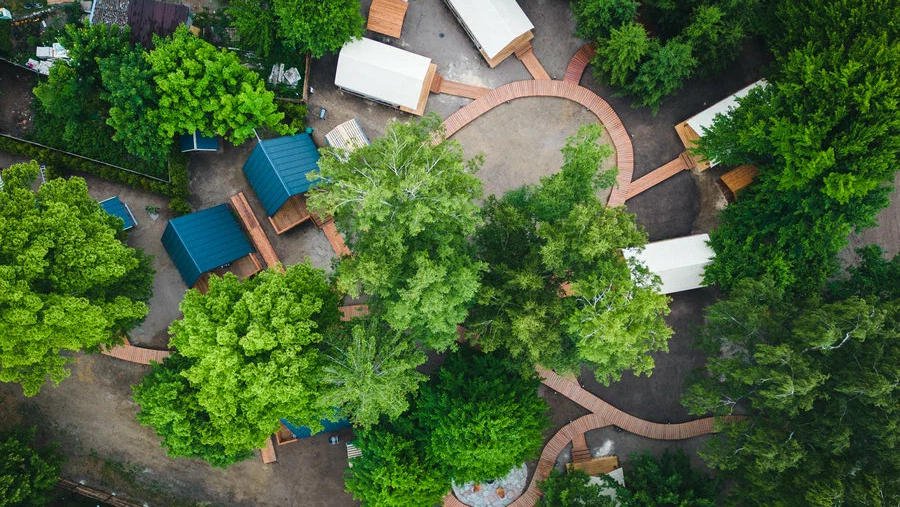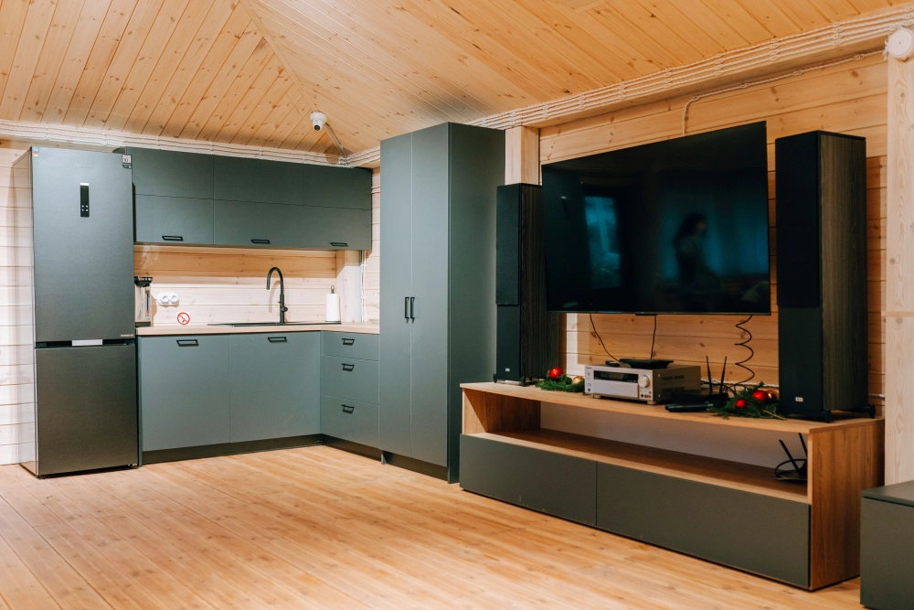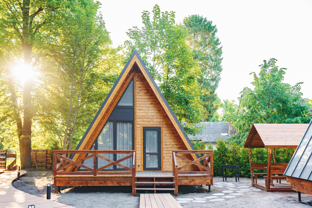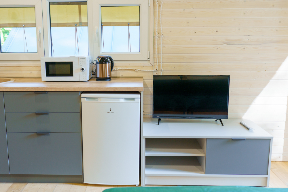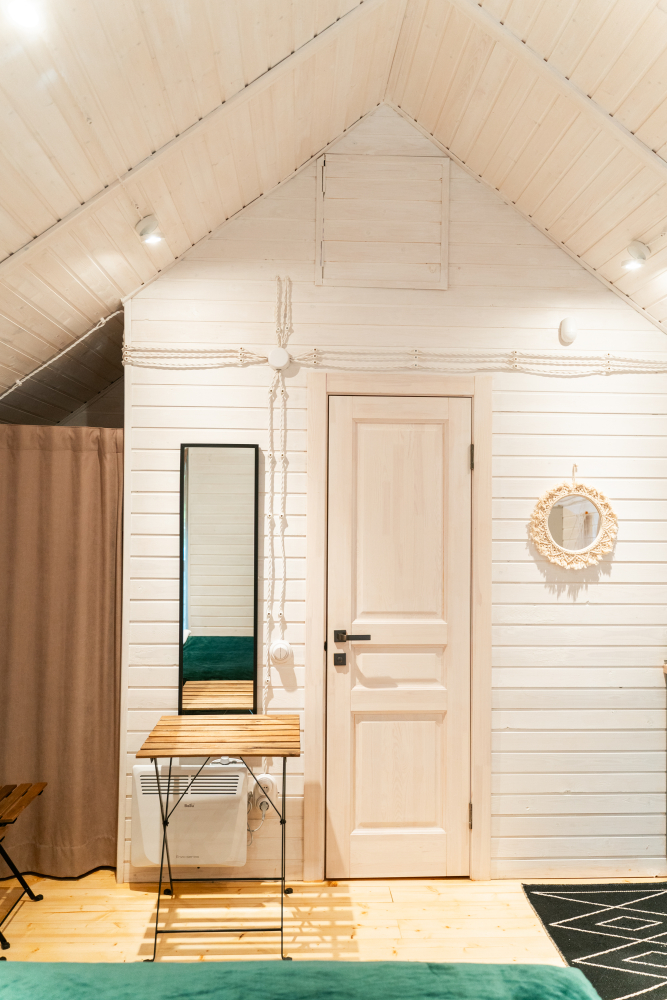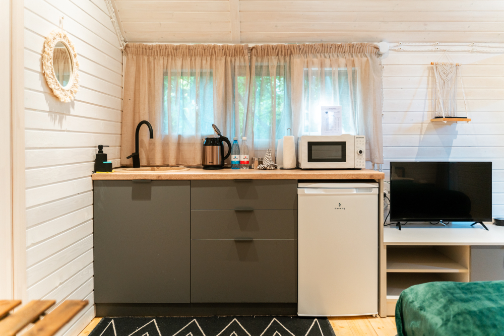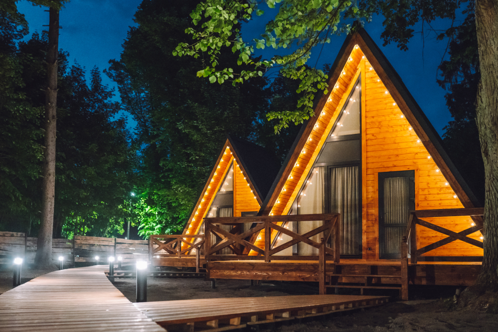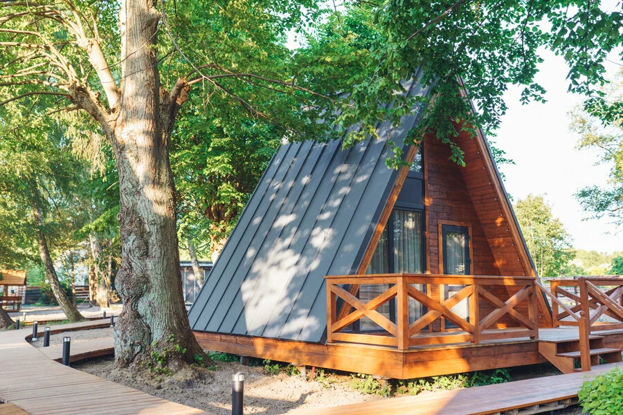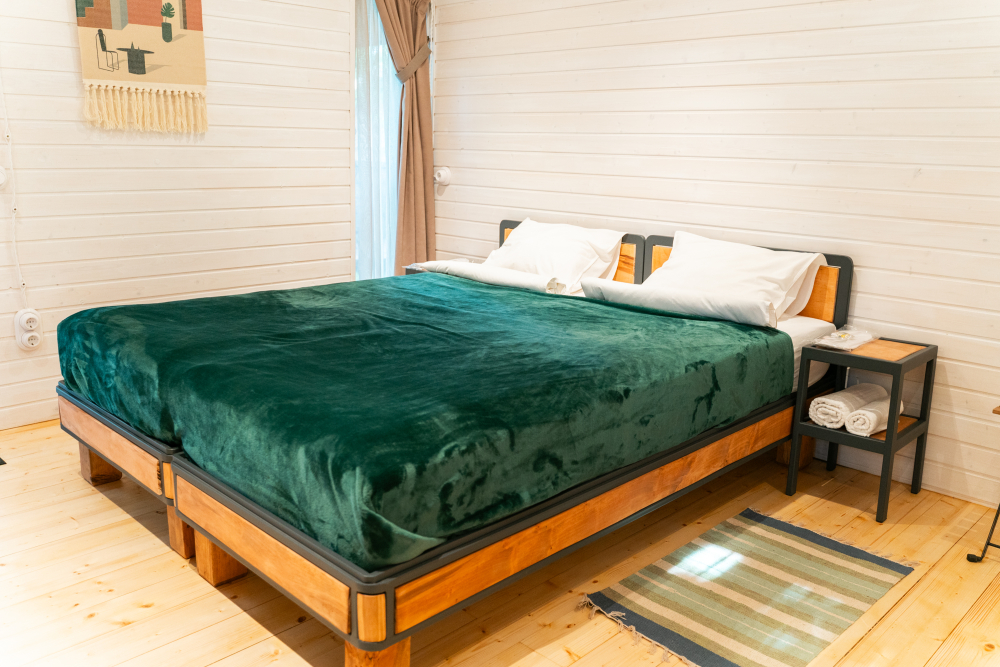 - Комфортабельные домики: разные по вместимости, полностью укомплектованные мебелью и техникой — готовы к вашему проживанию.
