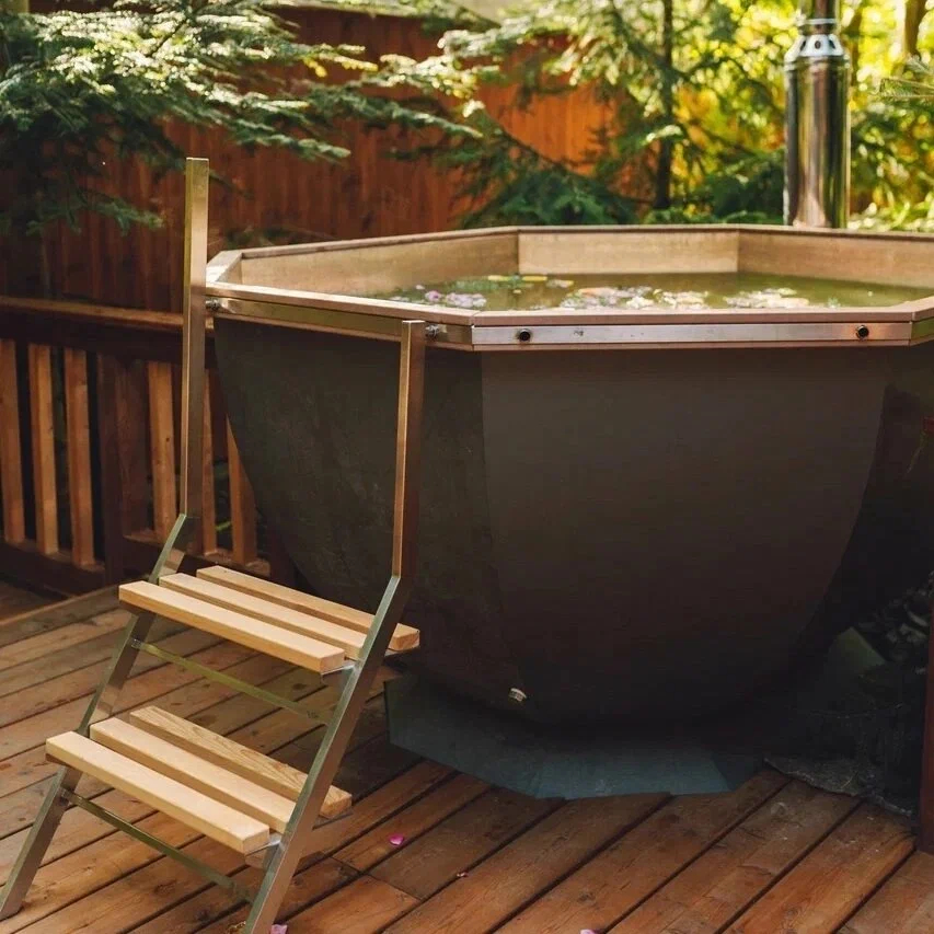 Наш банный чан — это не просто место для принятия водных процедур, но и настоящий оазис комфорта. Он размещается прямо на территории глэмпинга, предлагая вам незабываемые моменты в кругу семьи и друзей!