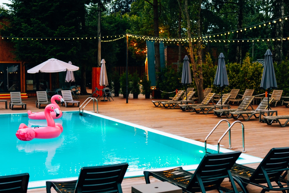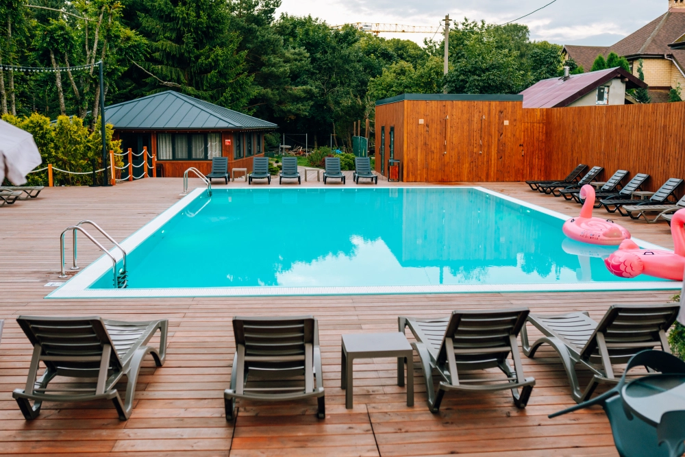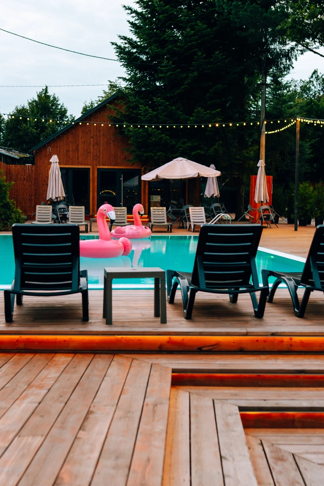 Наш бассейн — это идеальное место для отдыха в любое время года. Наслаждайтесь плаванием, независимо от сезона, в тепле и комфорте. Вода всегда поддерживается на приятной температуре, а живописная природа вокруг добавляет атмосферы уединения и покоя.