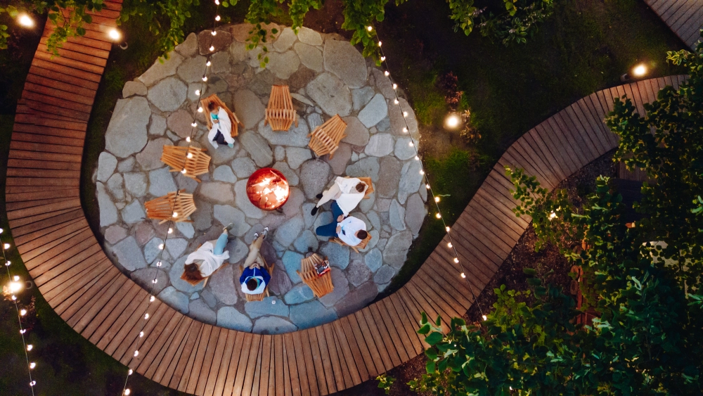 - Костровая зона: идеальное место для вечеров у огня в компании друзей или семьи.