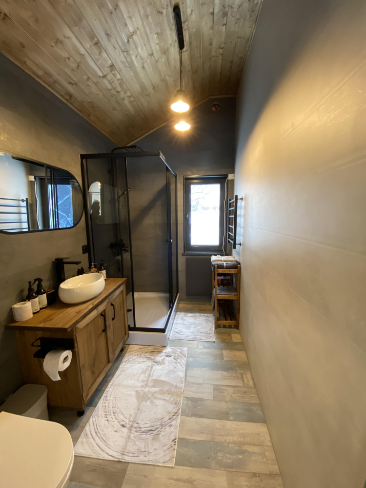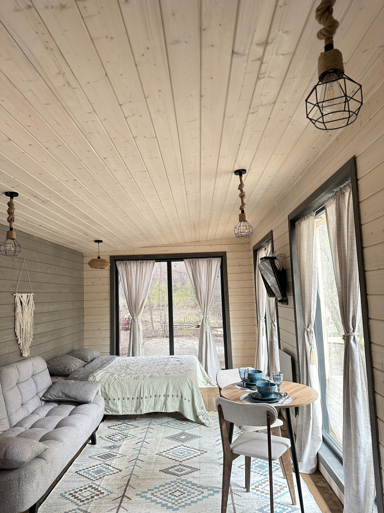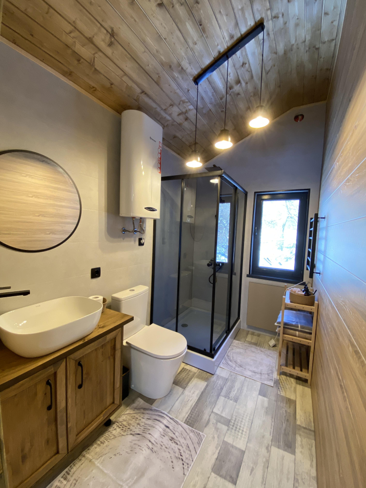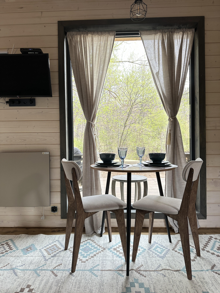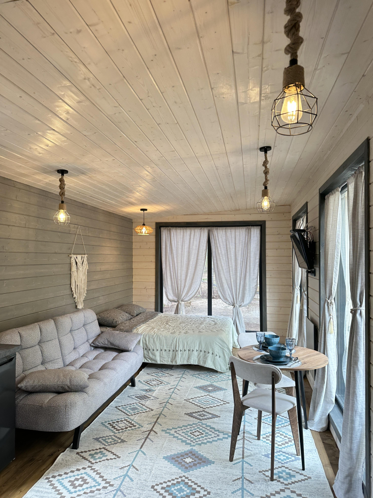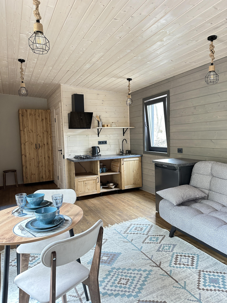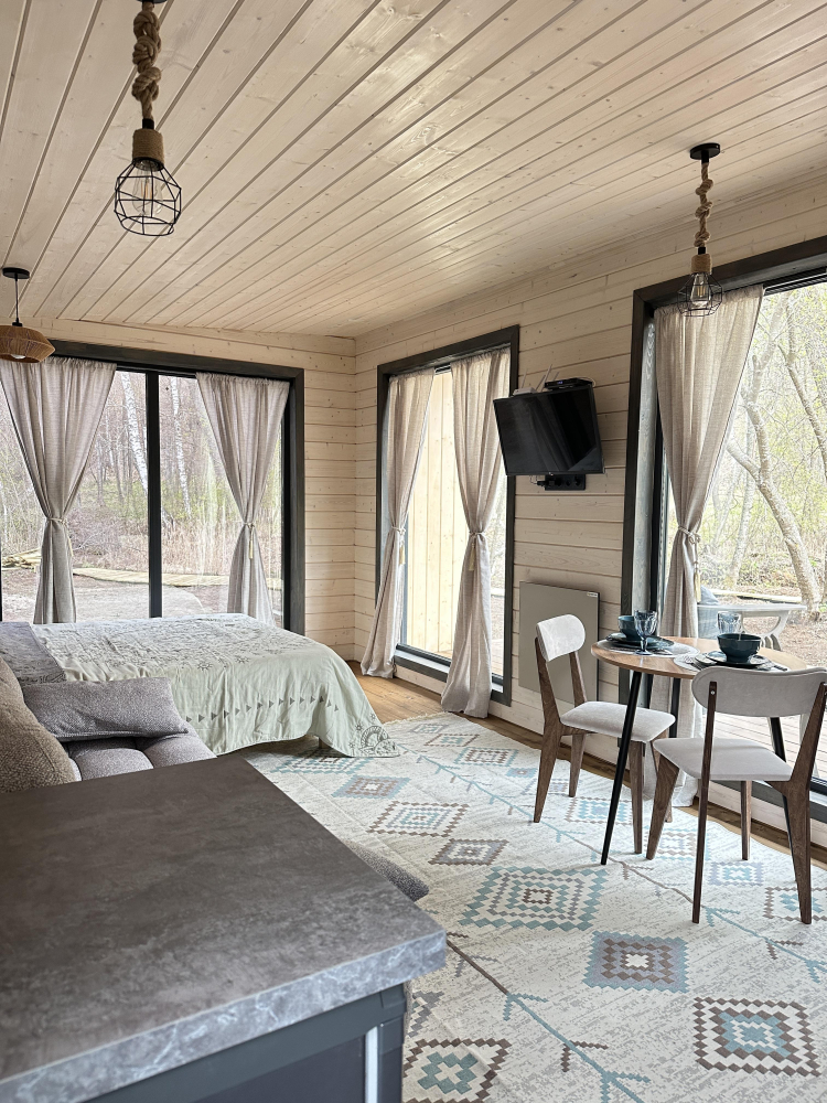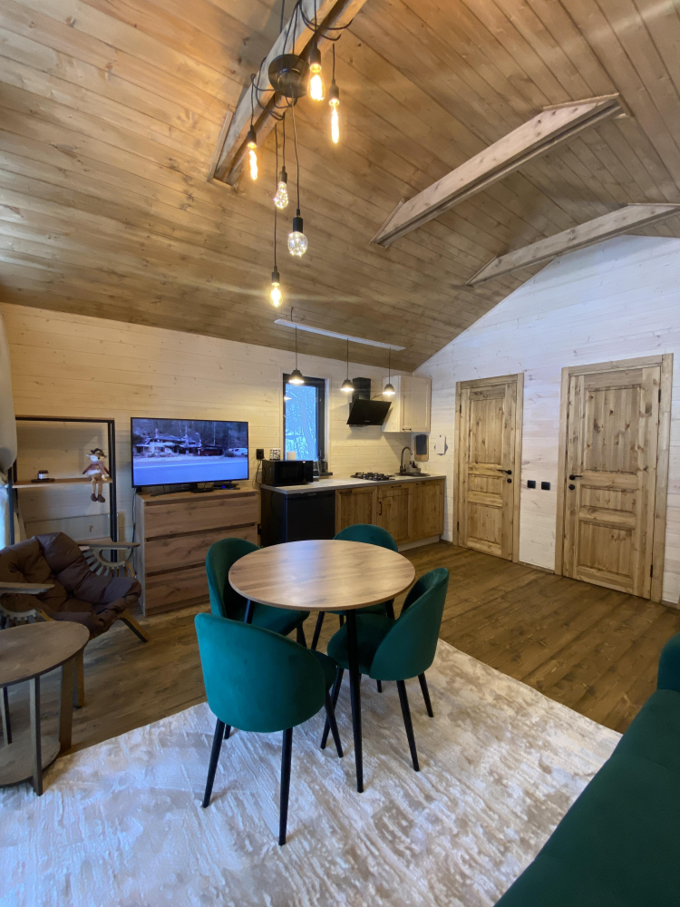 -Здесь вы найдете просторные, теплые и уютные дома, продуманные до мелочей для вашего максимального комфорта. Все дома полностью укомплектованы современной мебелью и техникой, выполнены в стильном интерьере и рассчитаны на комфортное размещение до 5 гостей. Панорамные окна позволяют любоваться захватывающими видами на горы и лес прямо из дома, создавая атмосферу уединения и гармонии с природой.