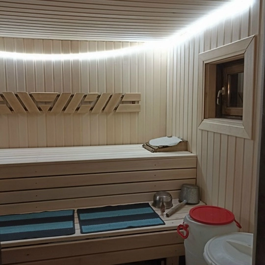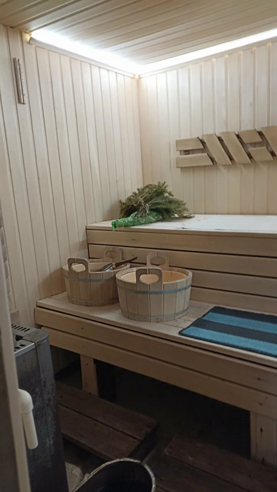 На территории есть русская баня на дровах. Стоимость 4000 за 2 часа. Включено: веник, простыни, полотенца, банные шапки, тапки, аромомасла, чай, варенье