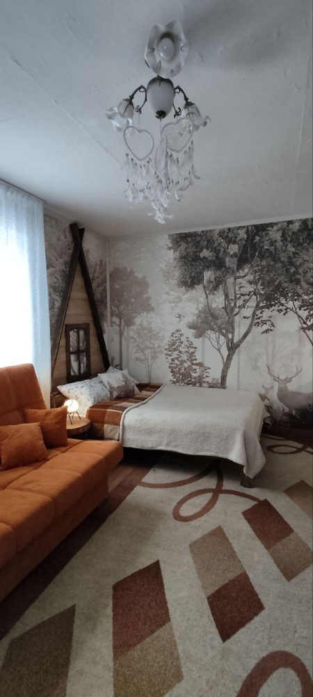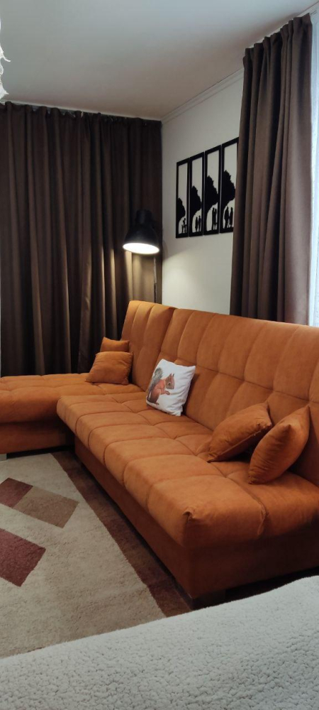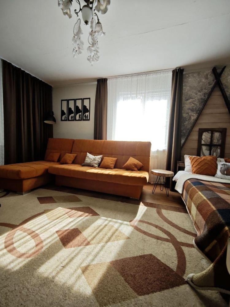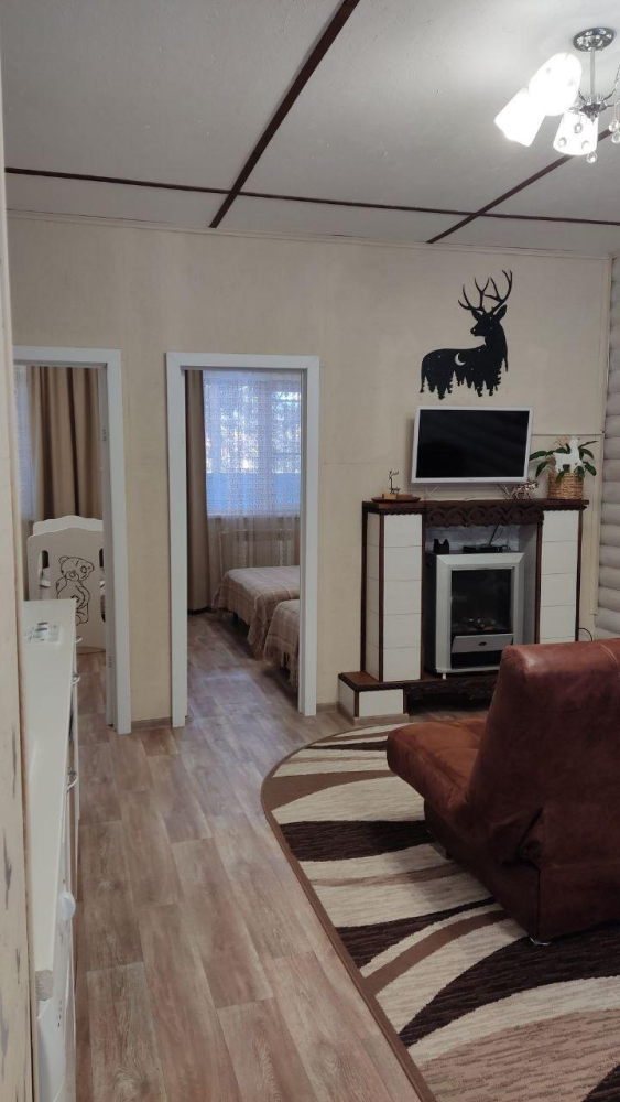 - Просторная гостиная с мягкой мебелью и телевизором с пакетом детских каналов