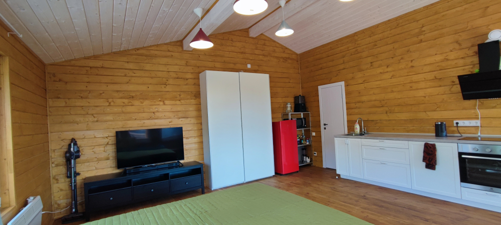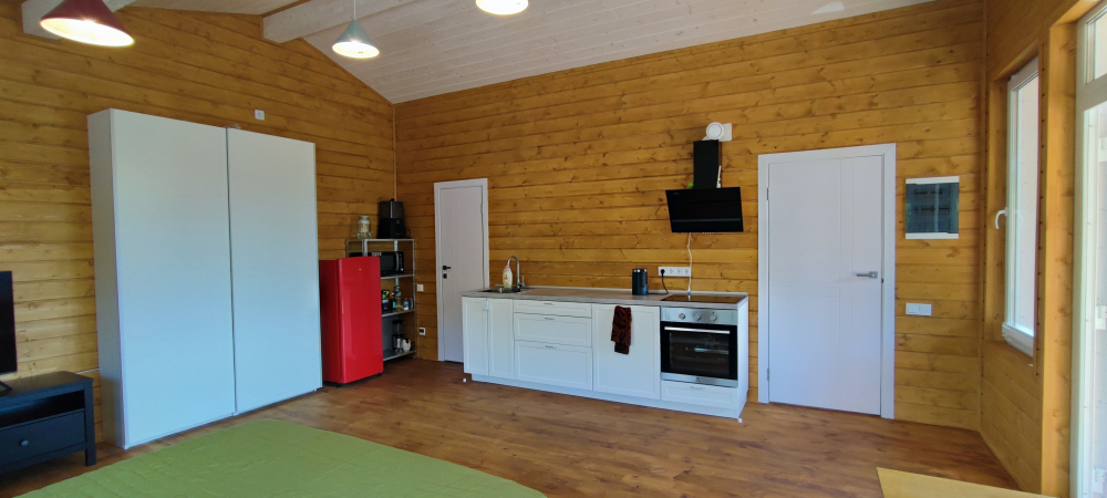 - Стильная кухня полностью оборудована техникой и посудой для комфортного приготовления блюд.