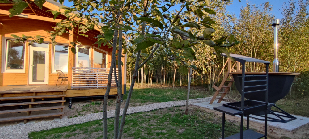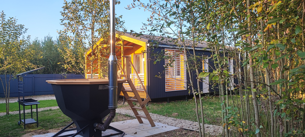 У домика есть собственный горячий чан под открытым небом. Есть тариф уже включающий горячий чан.
