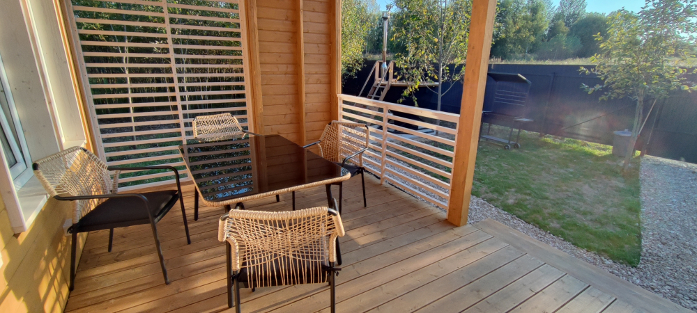 - Ухоженная терраса с уличной мебелью — идеальное место для завтраков на свежем воздухе.
