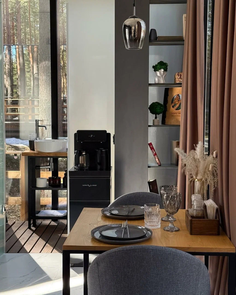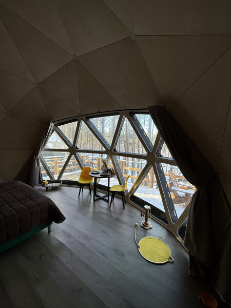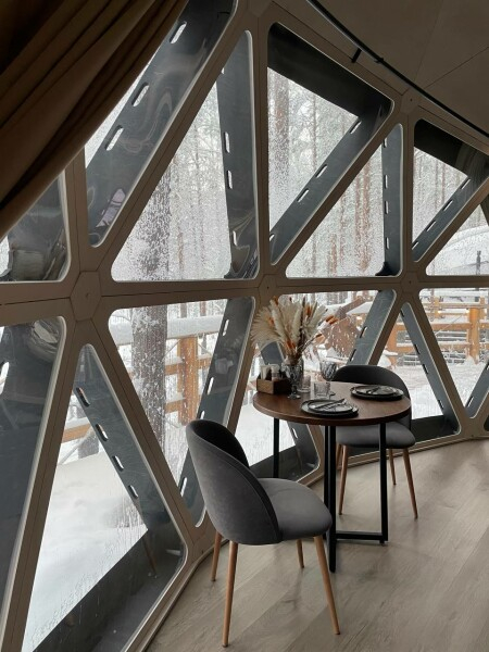 Добро пожаловать в уютное лесное кафе в панорамном куполе! Здесь вы сможете прочувствовать атмосферу нашего мистического глэмпинга и окунуться в удивительный мир природы