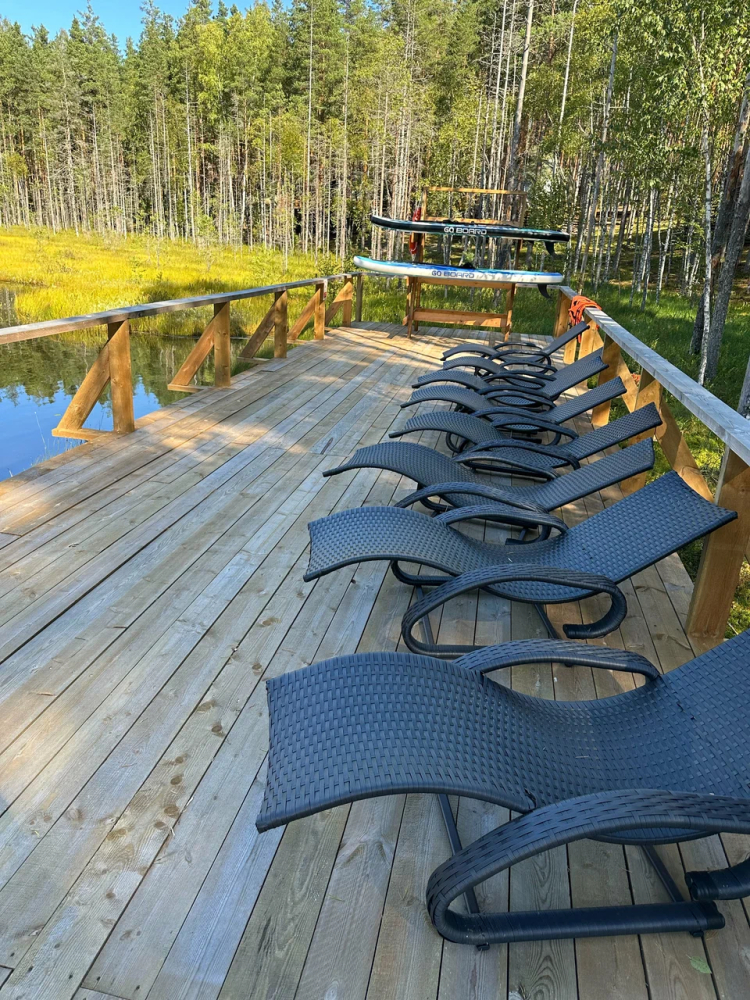 Баня на озереУникальное пространство для очищения души и тела. Баня расположена прямо на воде, в ней уютная парная с панорамным видом на озеро, комфортная комната отдыха, душ и санузел.