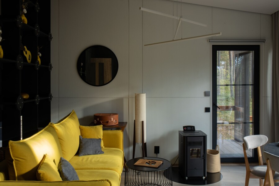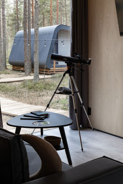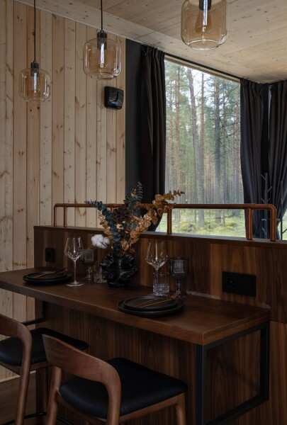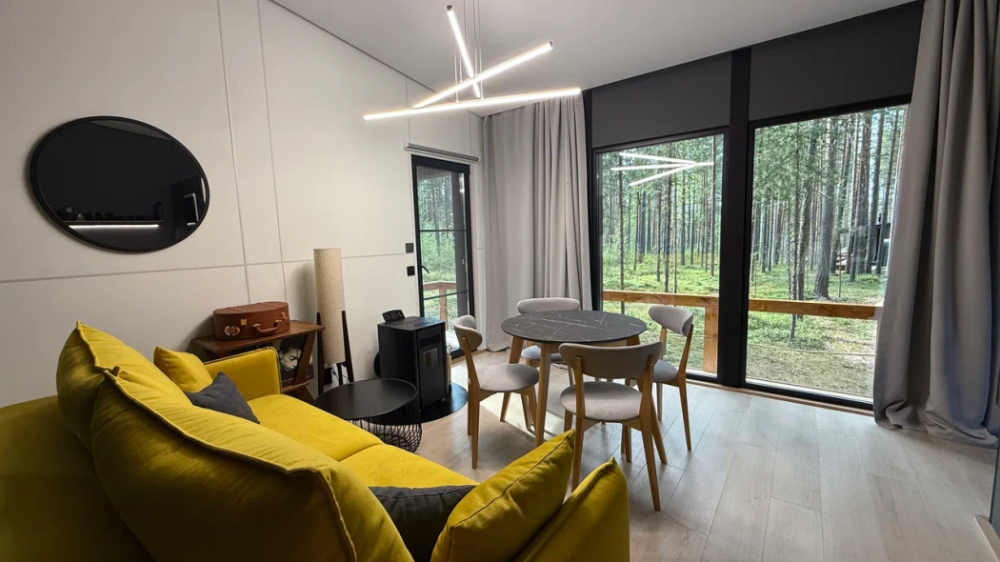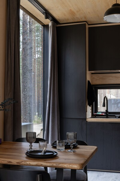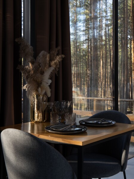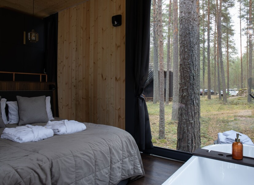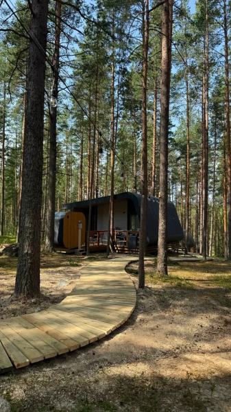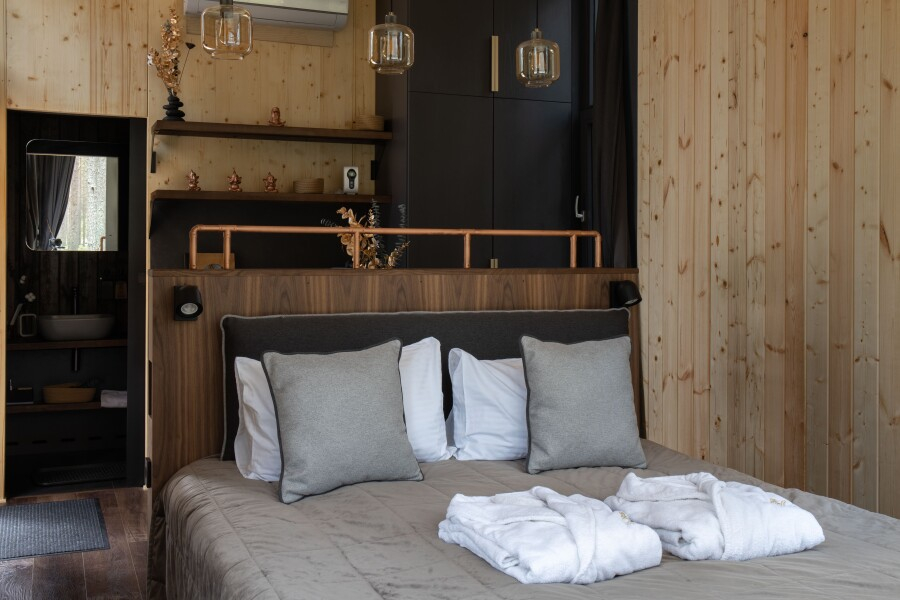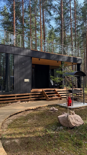 Все объекты полностью оборудованы качественной мебелью и техникой и оформлены в современном стиле, создающем атмосферу лёгкости и комфорта. В некоторых домах есть собственная купель на веранде — идеальное место для релаксации с видом на лес и озеро.