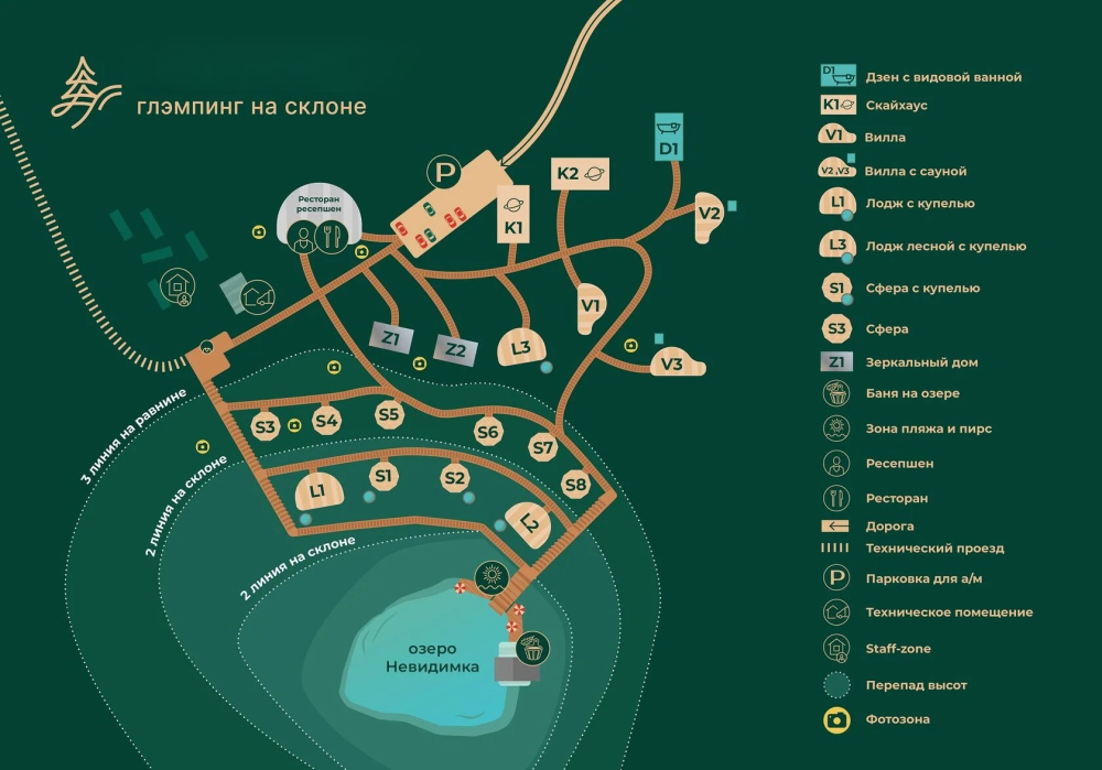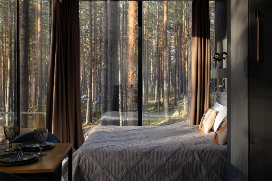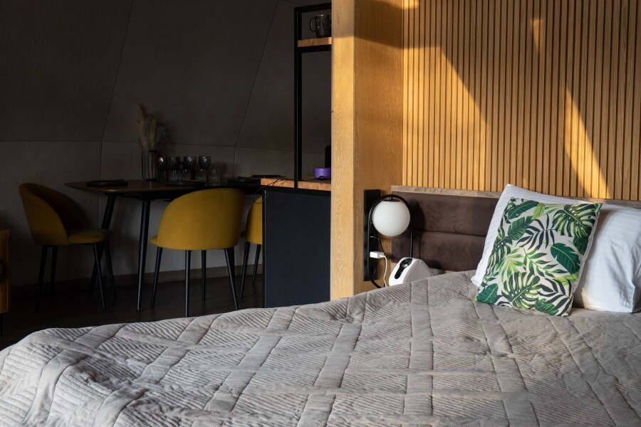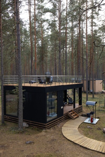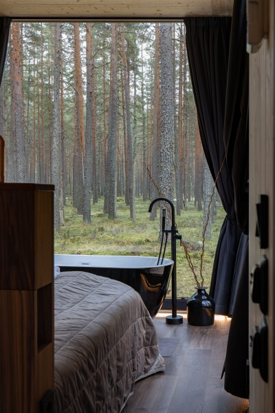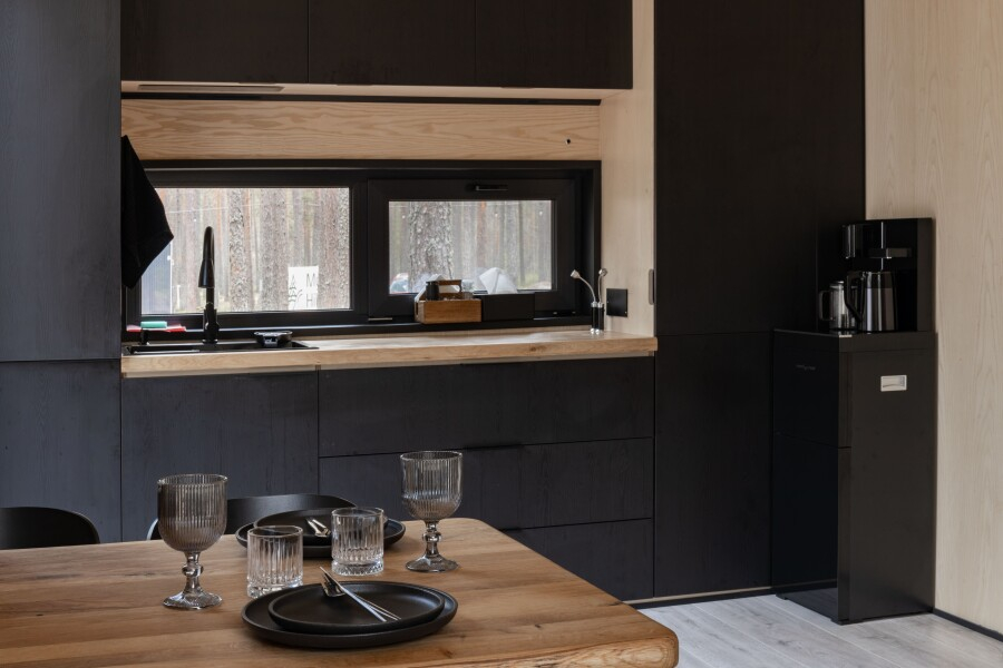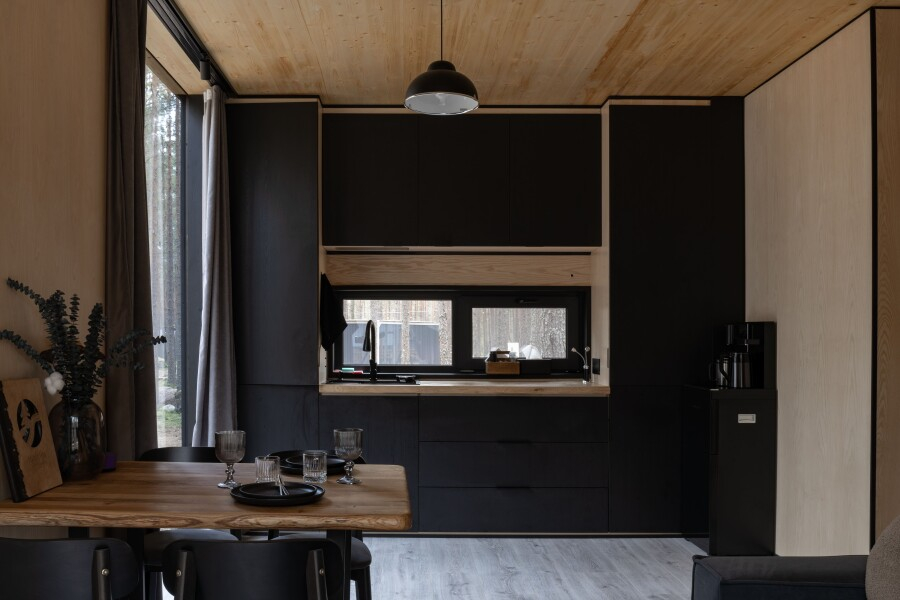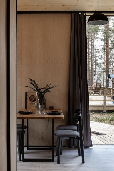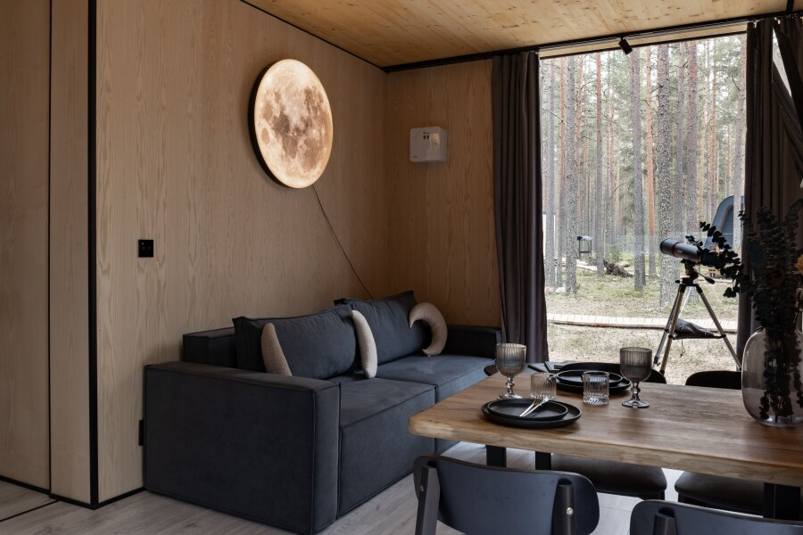 Все объекты полностью оборудованы качественной мебелью и техникой и оформлены в современном стиле, создающем атмосферу лёгкости и комфорта. В некоторых домах есть собственная купель на веранде — идеальное место для релаксации с видом на лес и озеро.