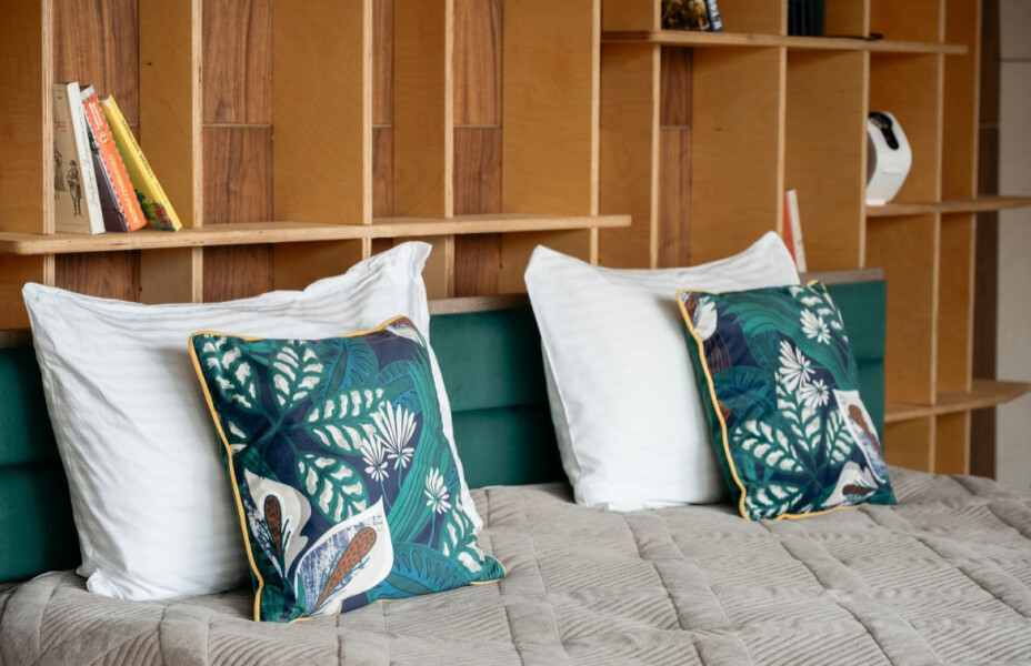 В тёплое время года можно окунуться в прохладную воду маленького озера сразу после парной, а потом расслабиться в чилаут-зоне на открытой площадке на крыше.