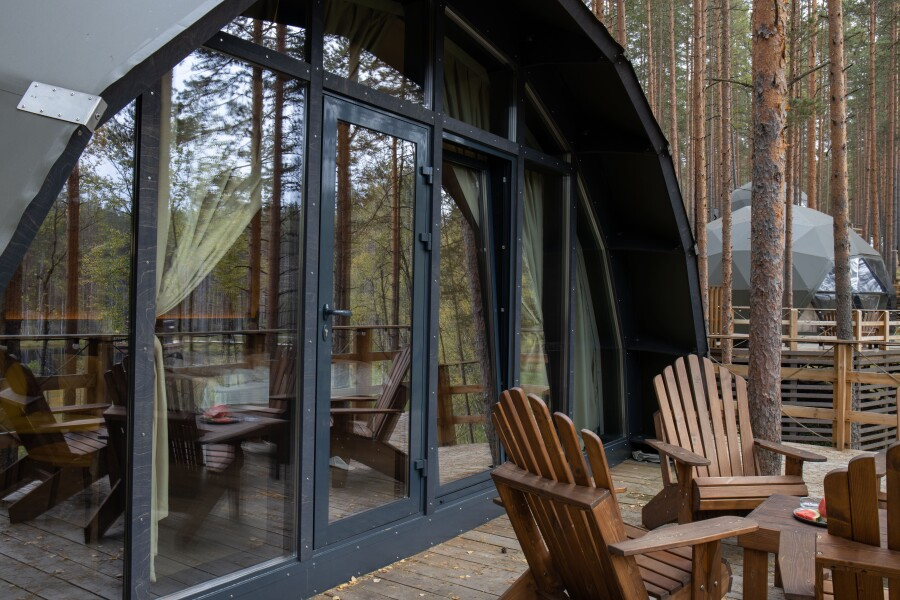 - Уникальные сферы — необычные круглые домики с продуманным дизайном.