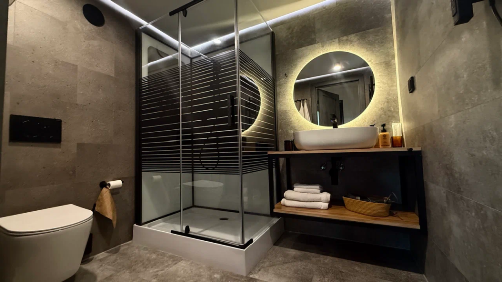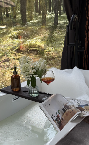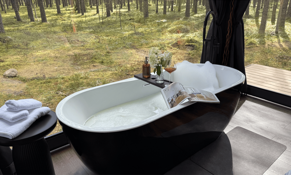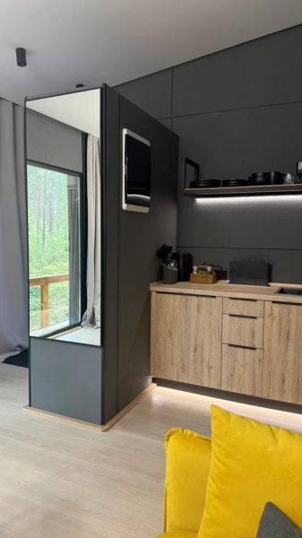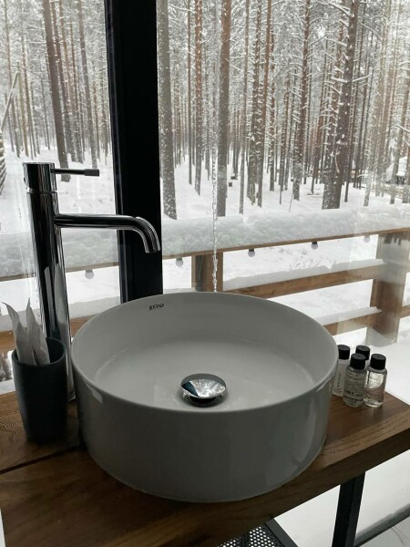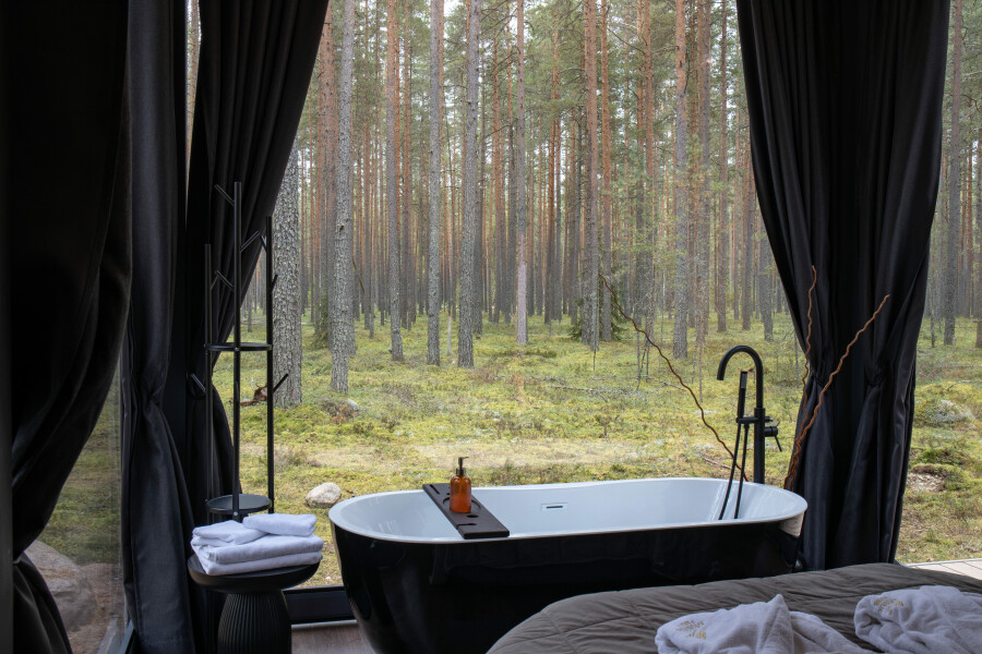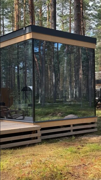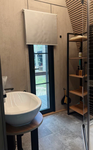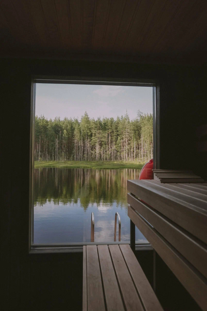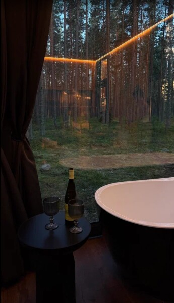 - Баня с панорамным окном — окунитесь в пар с видом на природу.