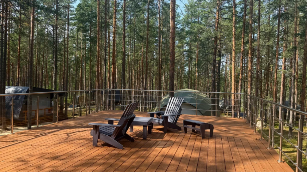- Уютные лоджи — компактные и стильные деревянные домики.