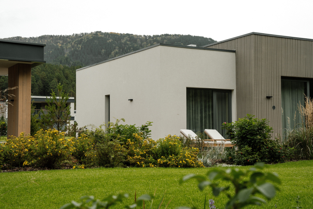 На территории комплекса расположены стильные и благоустроенные виллы, рассчитанные на 4–8 гостей. Каждая вилла полностью укомплектована современной мебелью и техникой, что создаёт атмосферу домашнего уюта и комфорта. Архитектура и интерьер удивят даже самых взыскательных гостей.