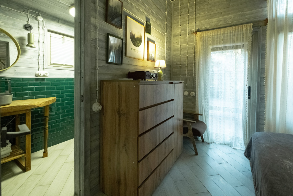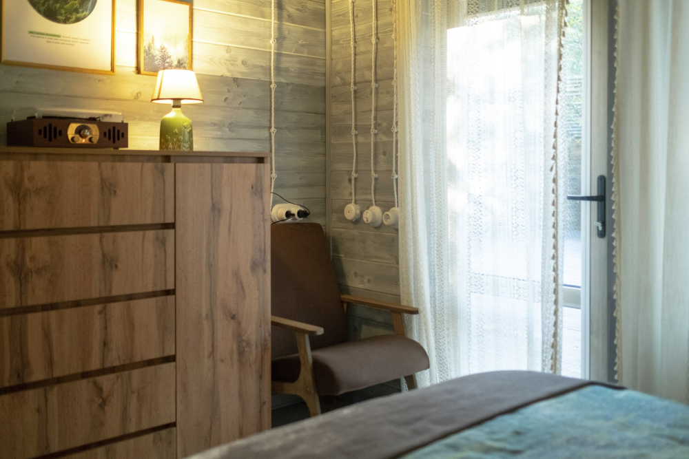 - Одна спальня с большой кроватью (160х200) с ортопедическим матрасом с эффектом памяти для максимального комфорта и спокойного сна.