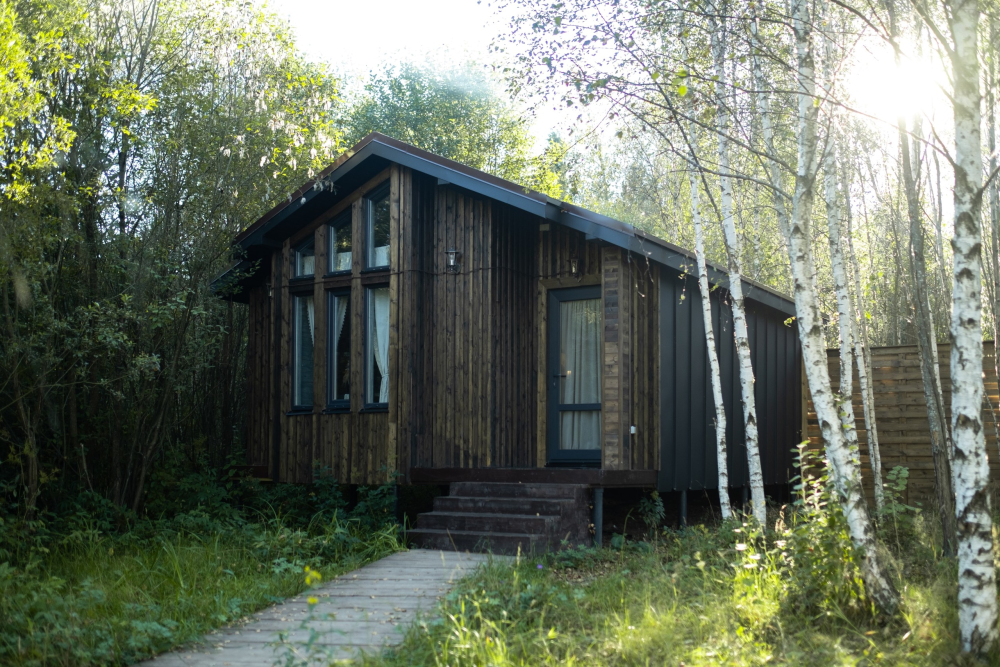 - Панорамные окна: Из дома открываются потрясающие виды природы, что позволяет почувствовать единение с лесом.