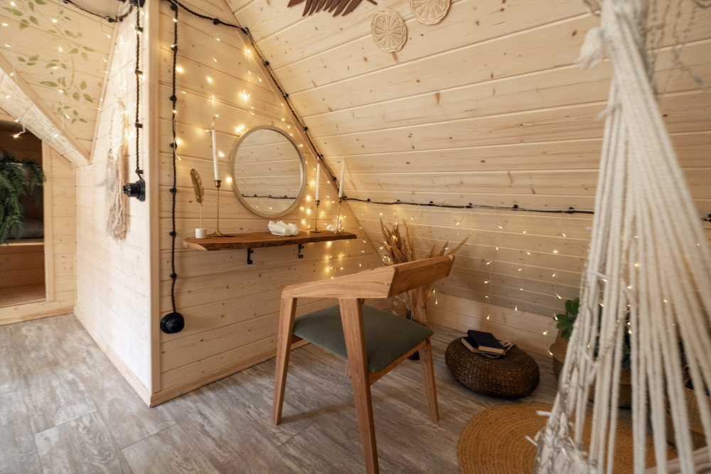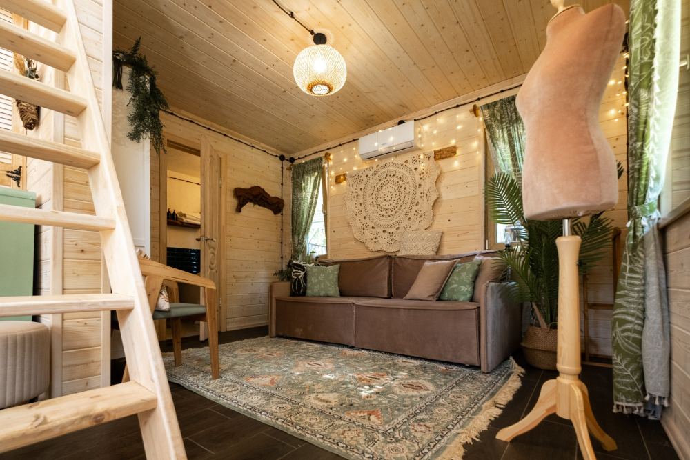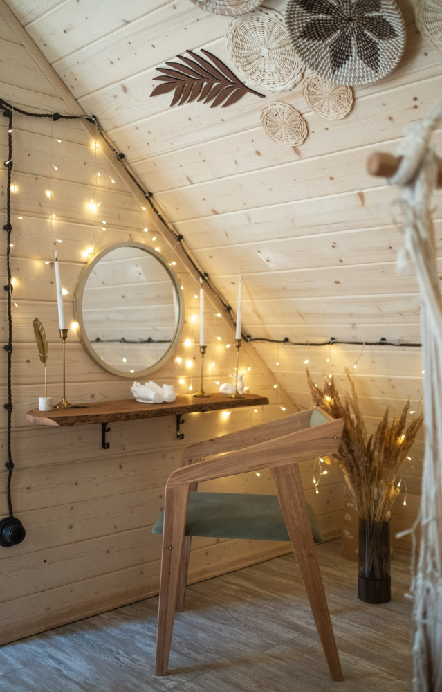 - Уединение и комфорт: Дом окружен отдельной территорией, что обеспечивает конфиденциальность. В каждом доме есть дворик с индивидуальной зоной для отдыха, барбекю и сибирским чаном-купелью для отдыха на свежем воздухе.