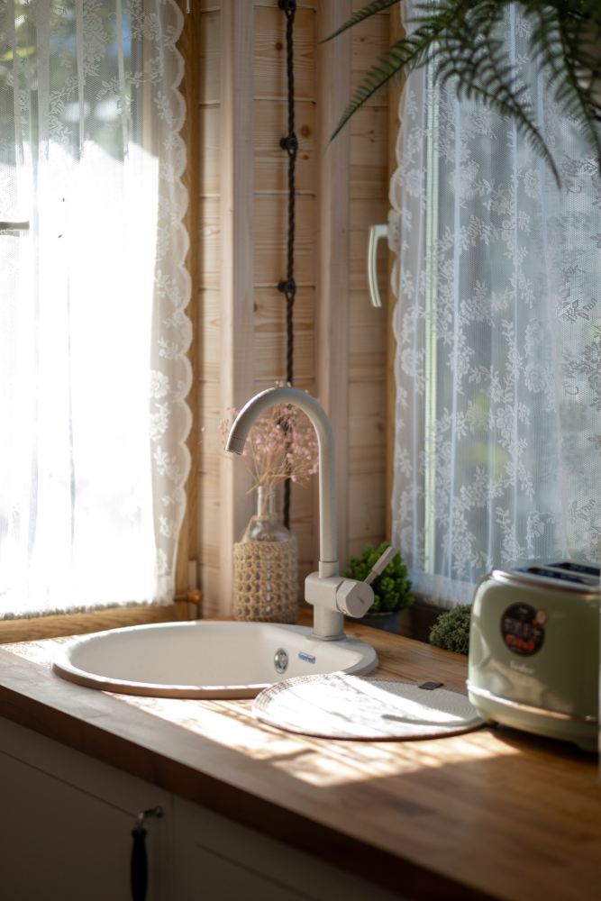 - Запасы для удобства: капсульный кофе, черный и зеленый чай, сахар, соль, перец, растительное масло, печенье.
